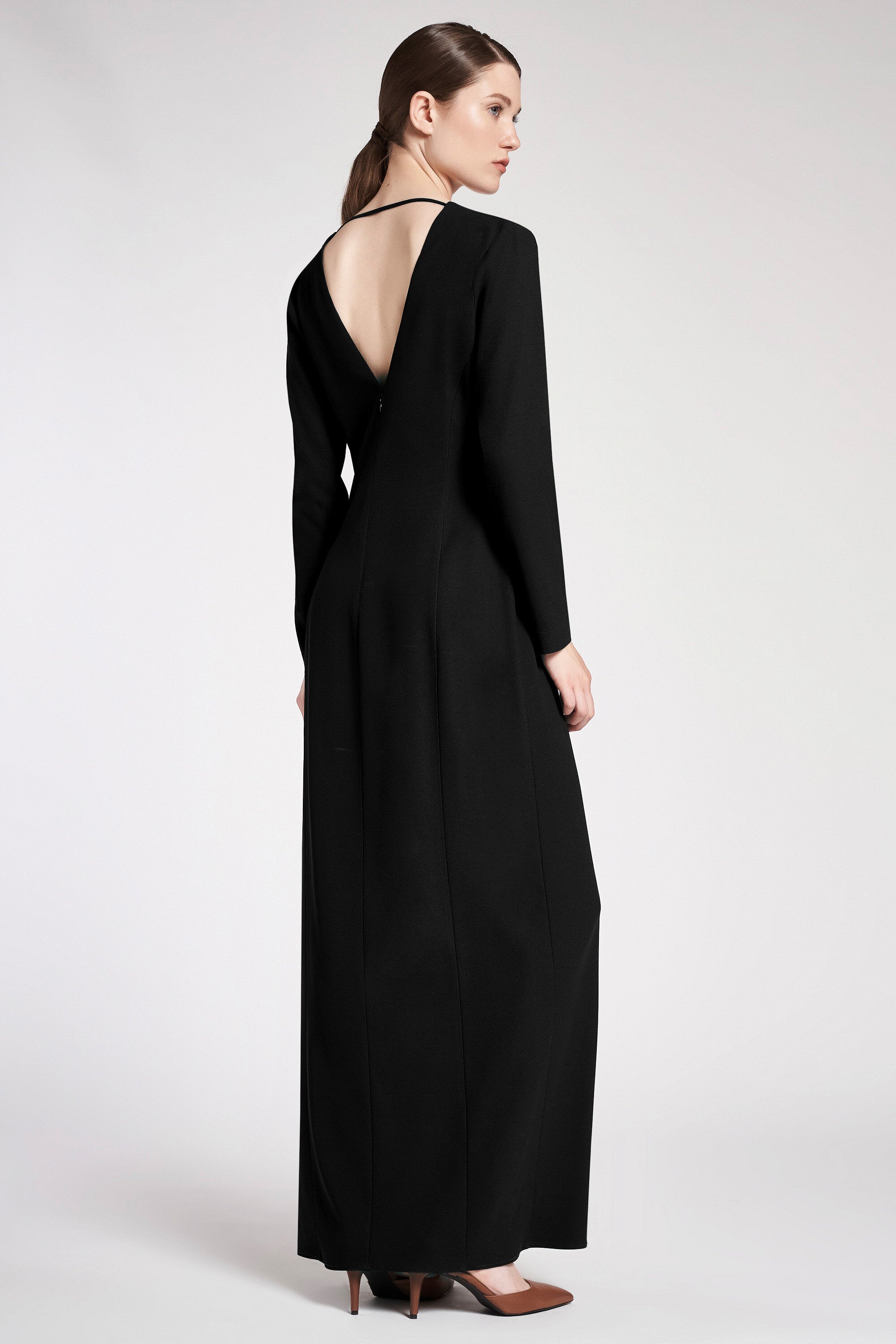 Abito a manica lunga in crepe di viscosa elasticizzato con profondo scollo a v davanti e dietro. ...Learn more
