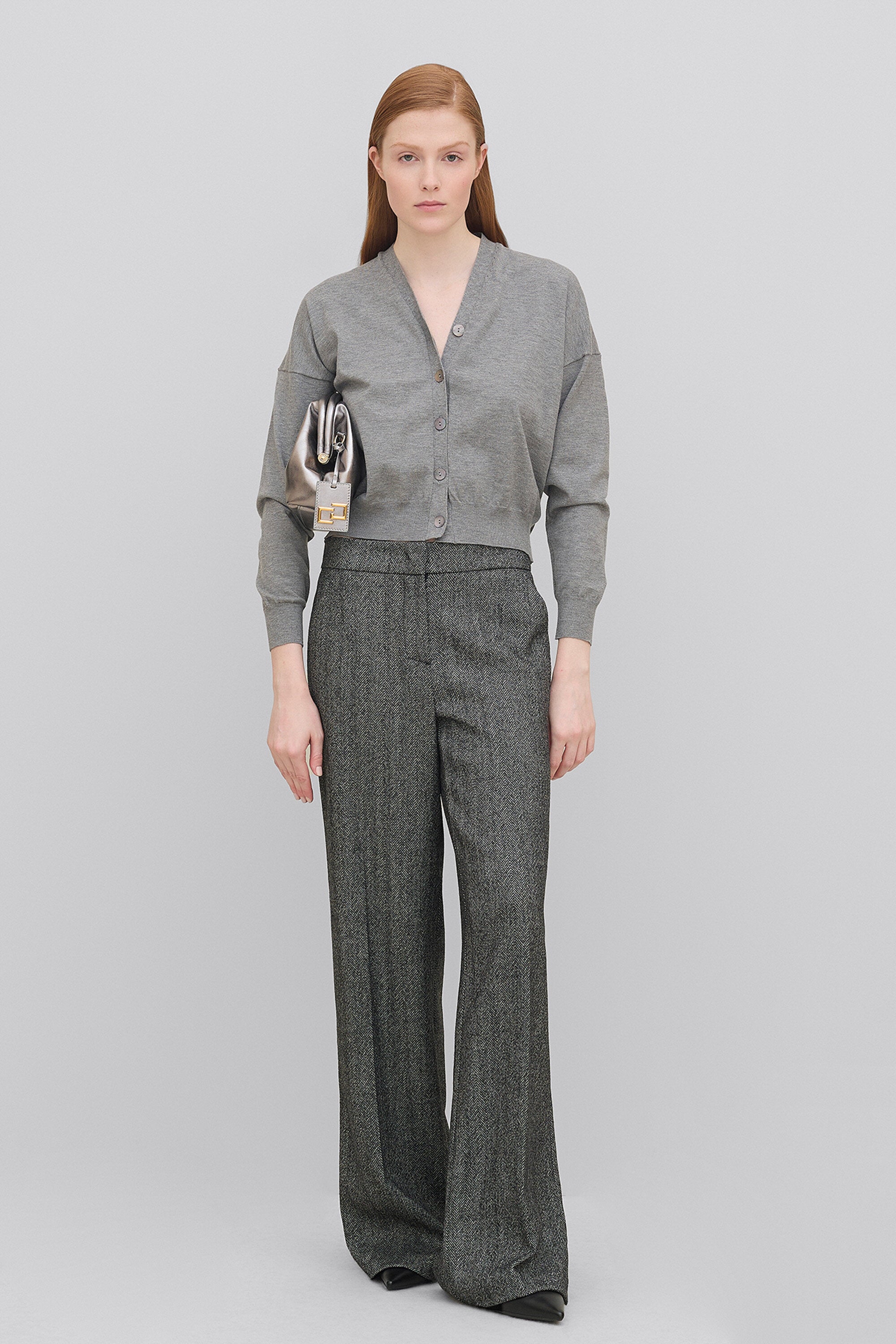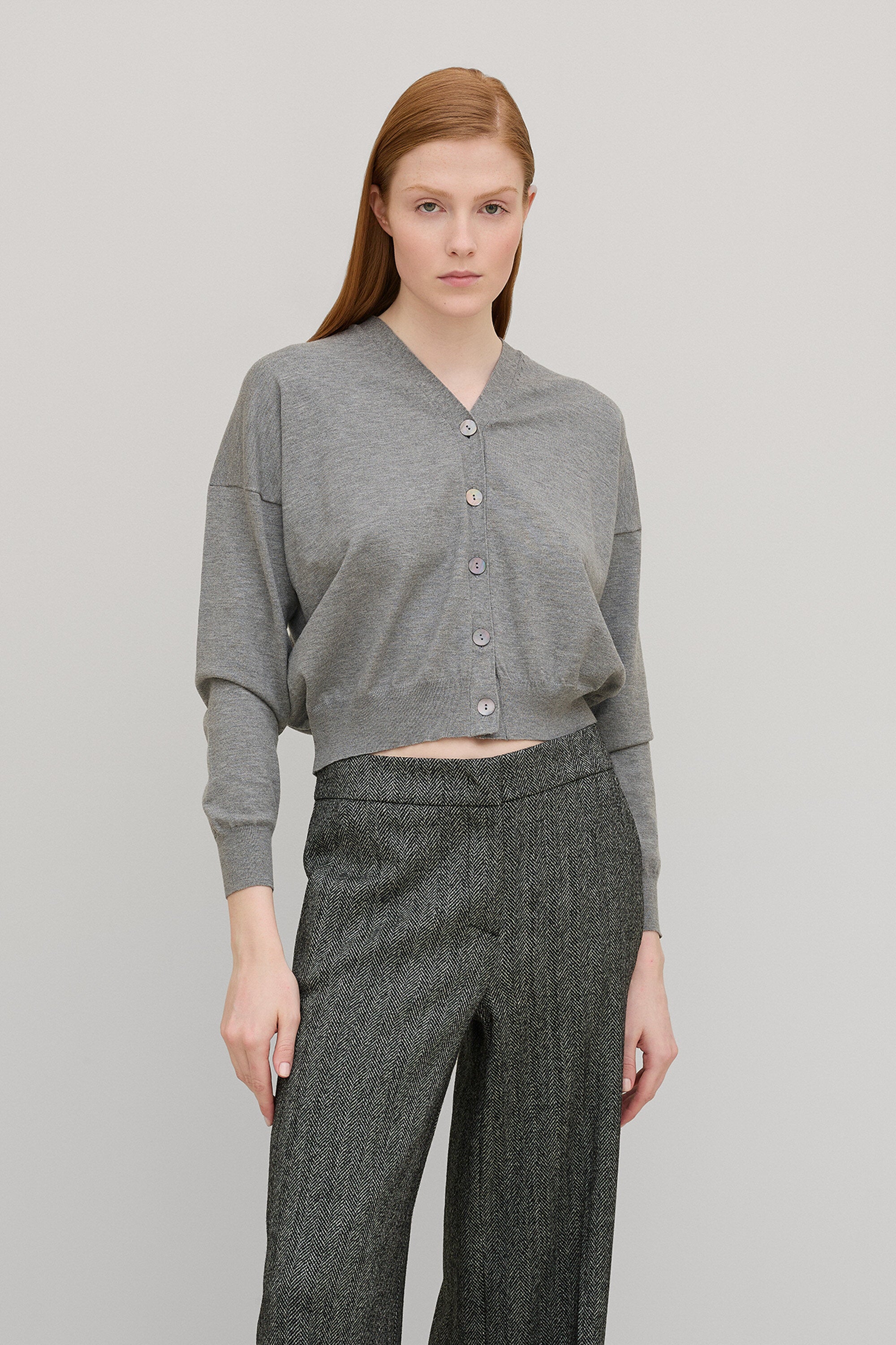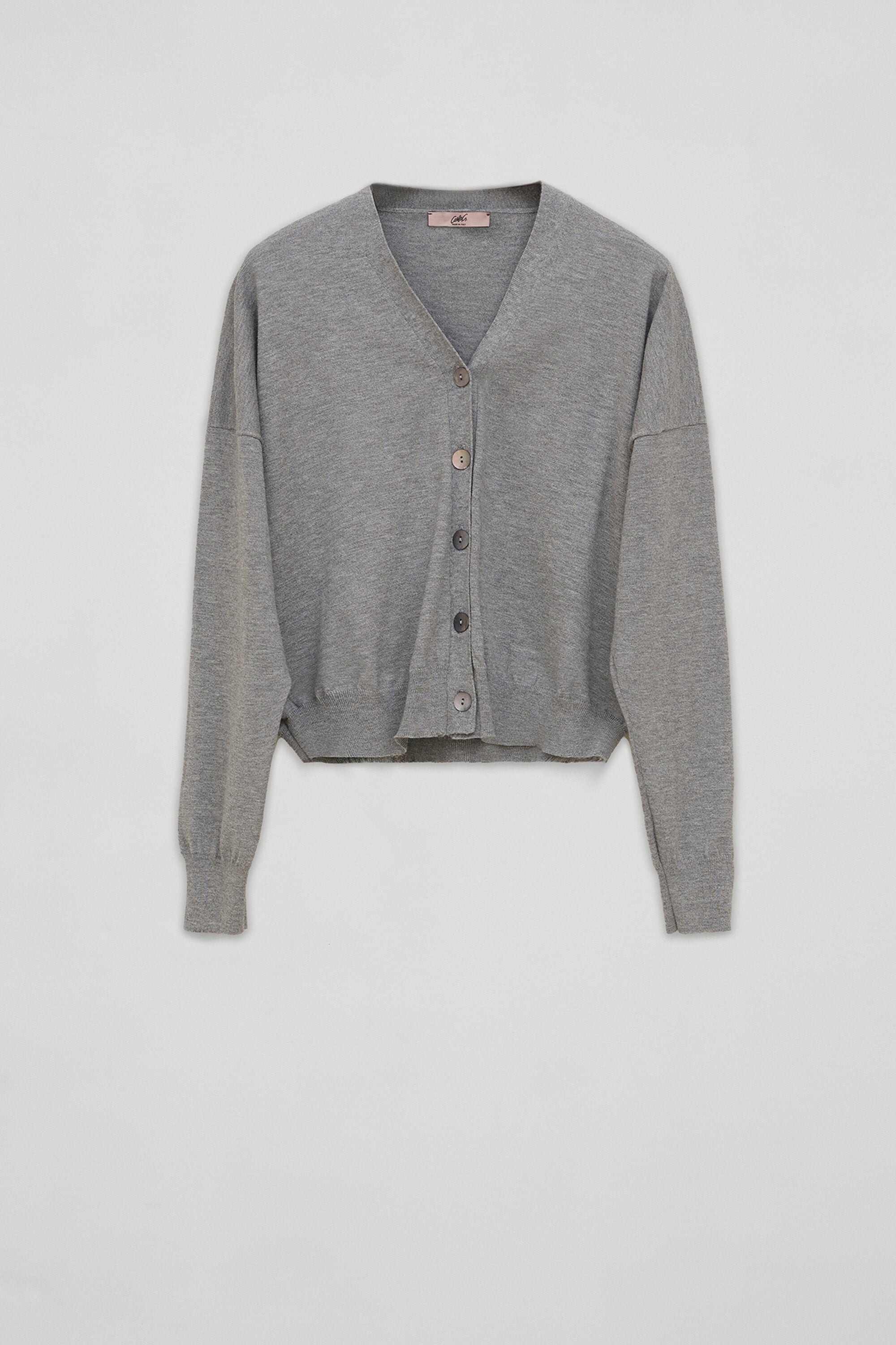 Cardigan a maniche lunghe in viscosa elasticizzata. Chiusura a cinque bottoni madreperla opaca. F...Learn more