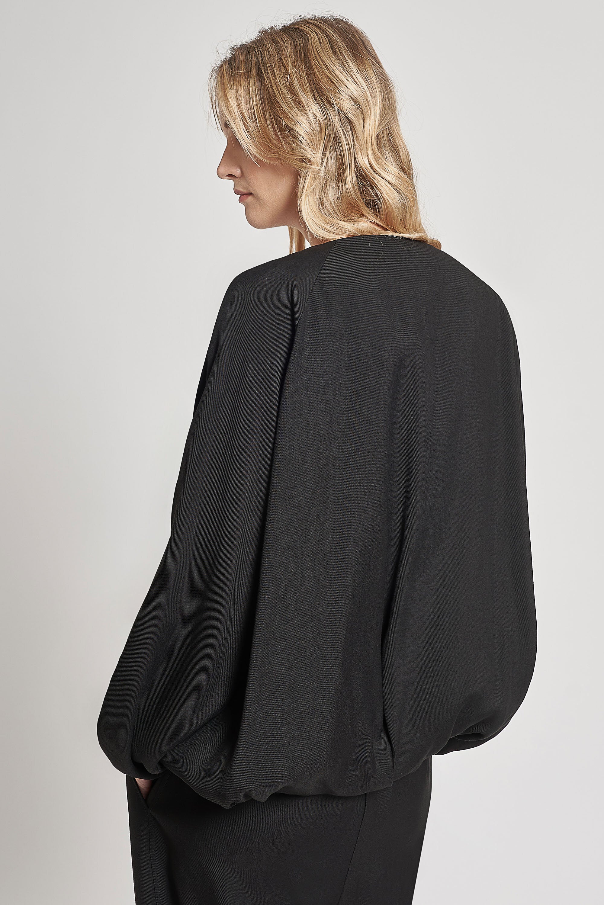 Bomber foderato in tessuto fluido diagonale. Taglio nel davanti con tasche e patte inserite. Fond...Learn more