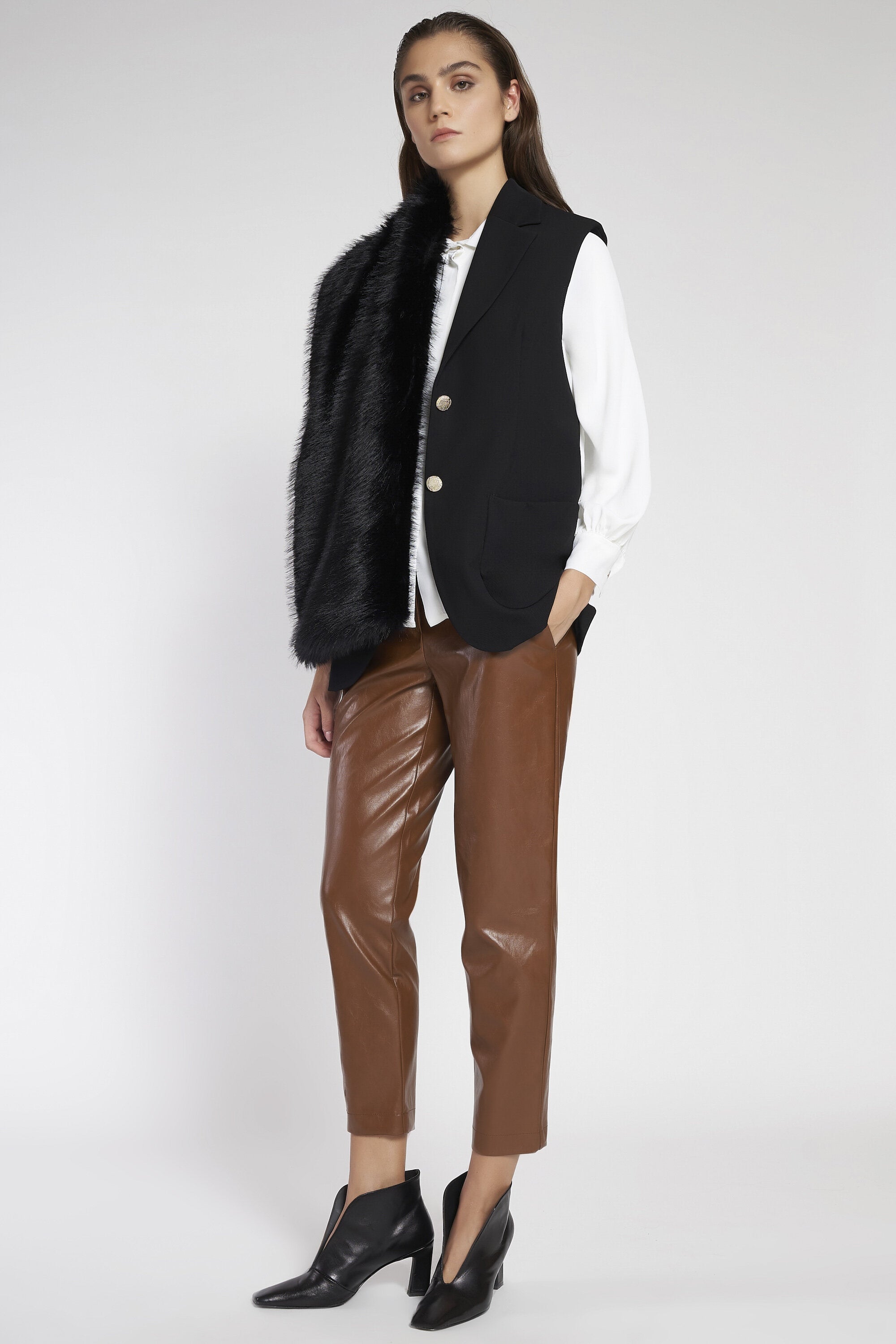 Gilet monopetto foderato in gabardina elasticizzata con spalline imbottite. Collo con revers e ch...Learn more