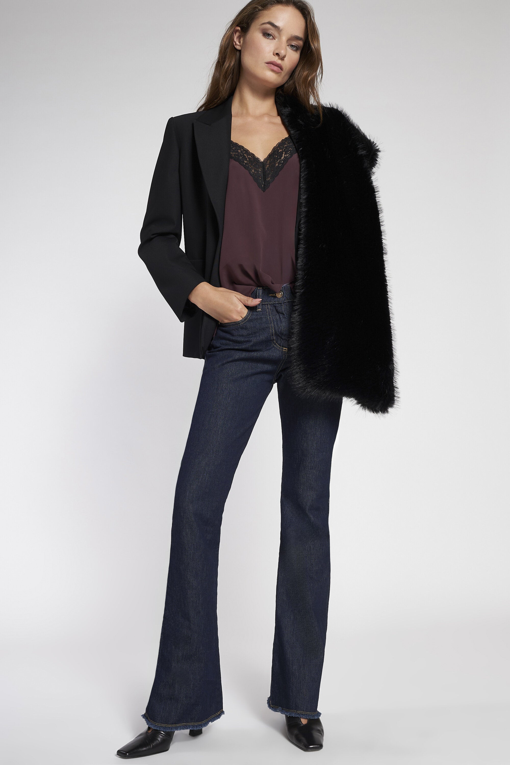 Top in viscosa con scollo a v e inserti in pizzo. Spalline sottili e spacchetti laterali. Lunghez...Learn more