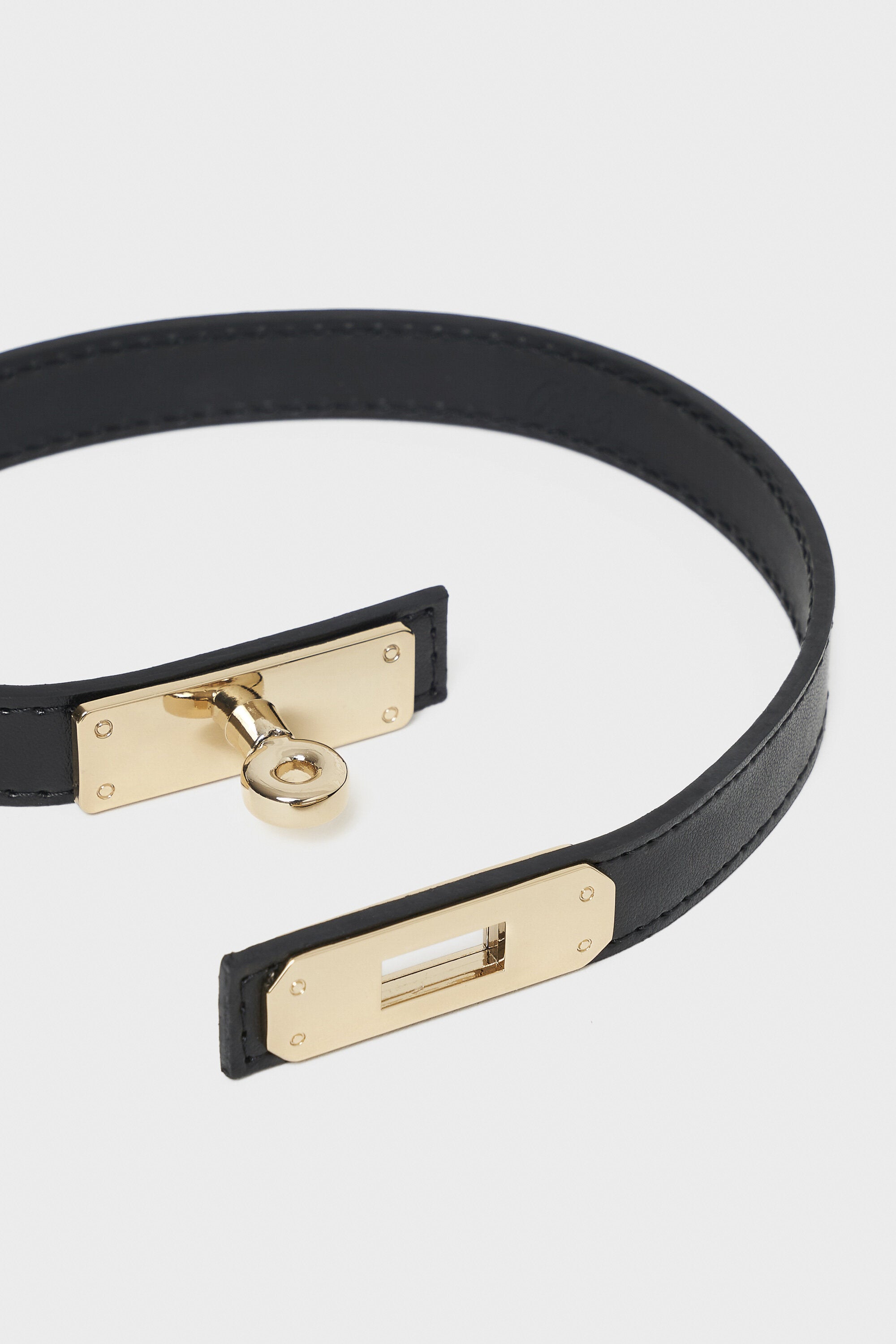 Bracciale doppio giro in pelle con chiusura a serratura.