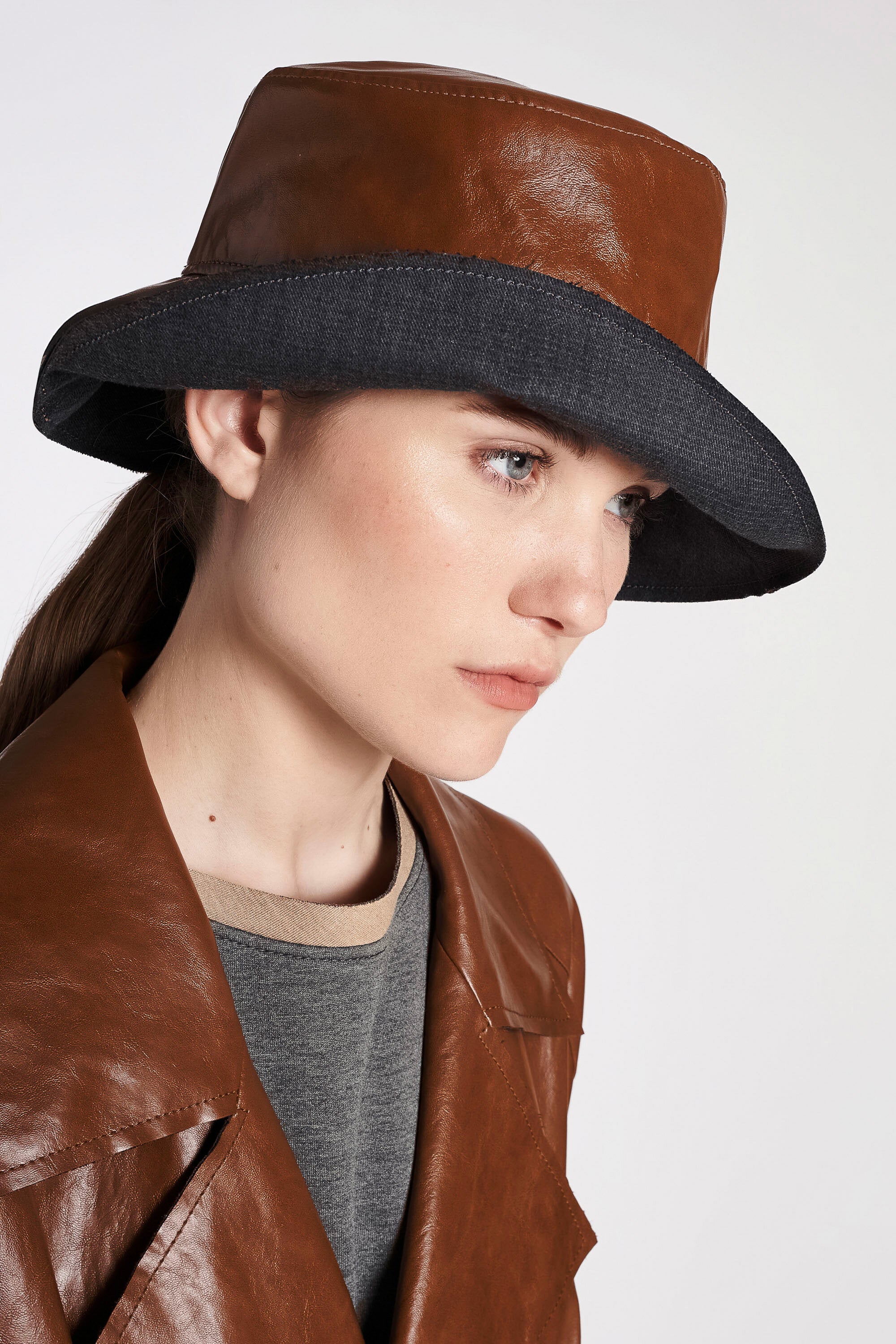 Cappello alla pescatora in ecopelle stropicciata.