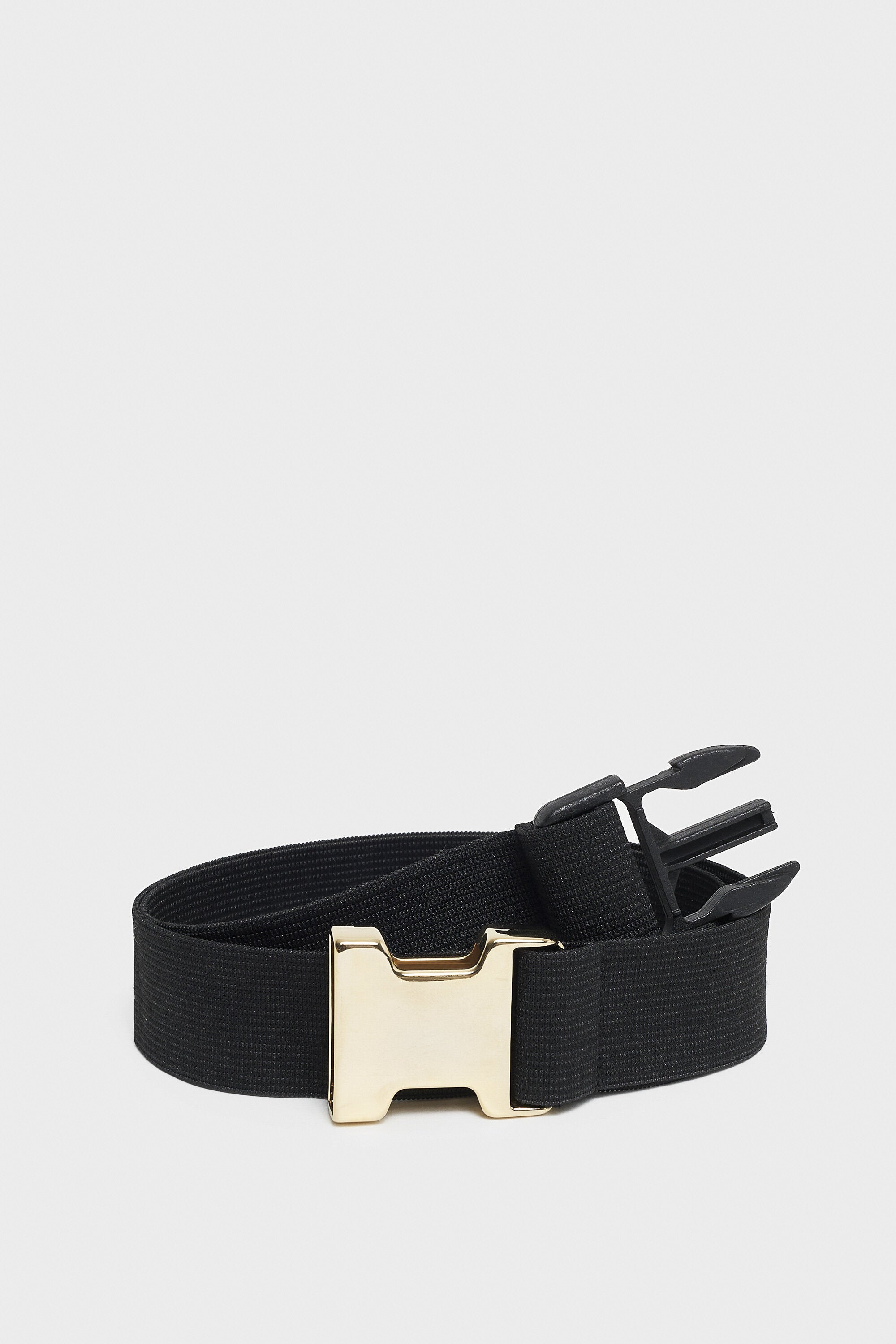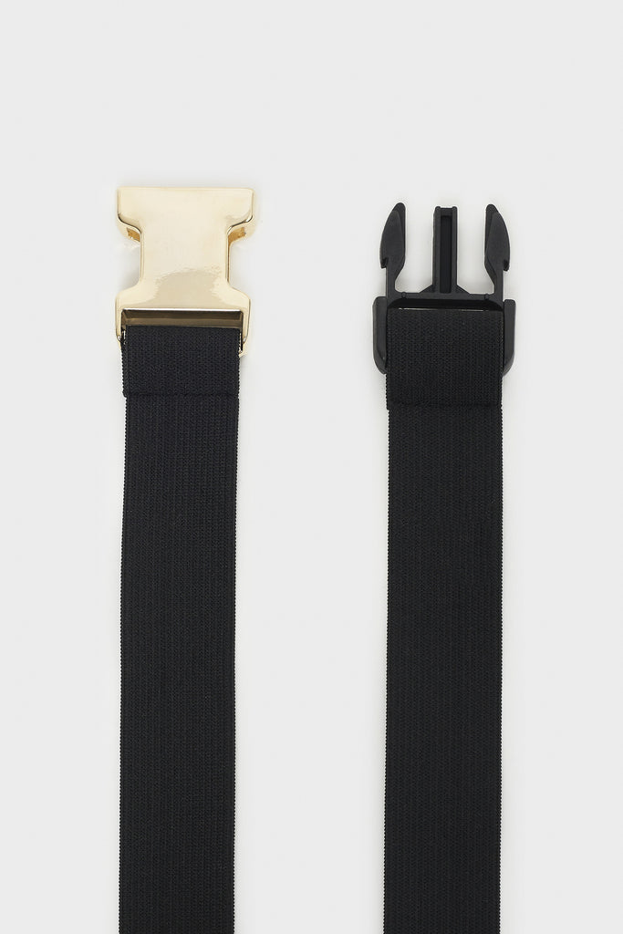 Cintura elastica con fibbia bimateriale metallo e plastica.