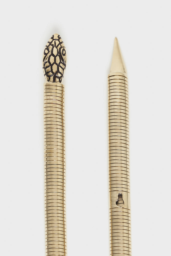 Cintura in maglia flessibile tubogas a forma di serpente con chiusura con perno.