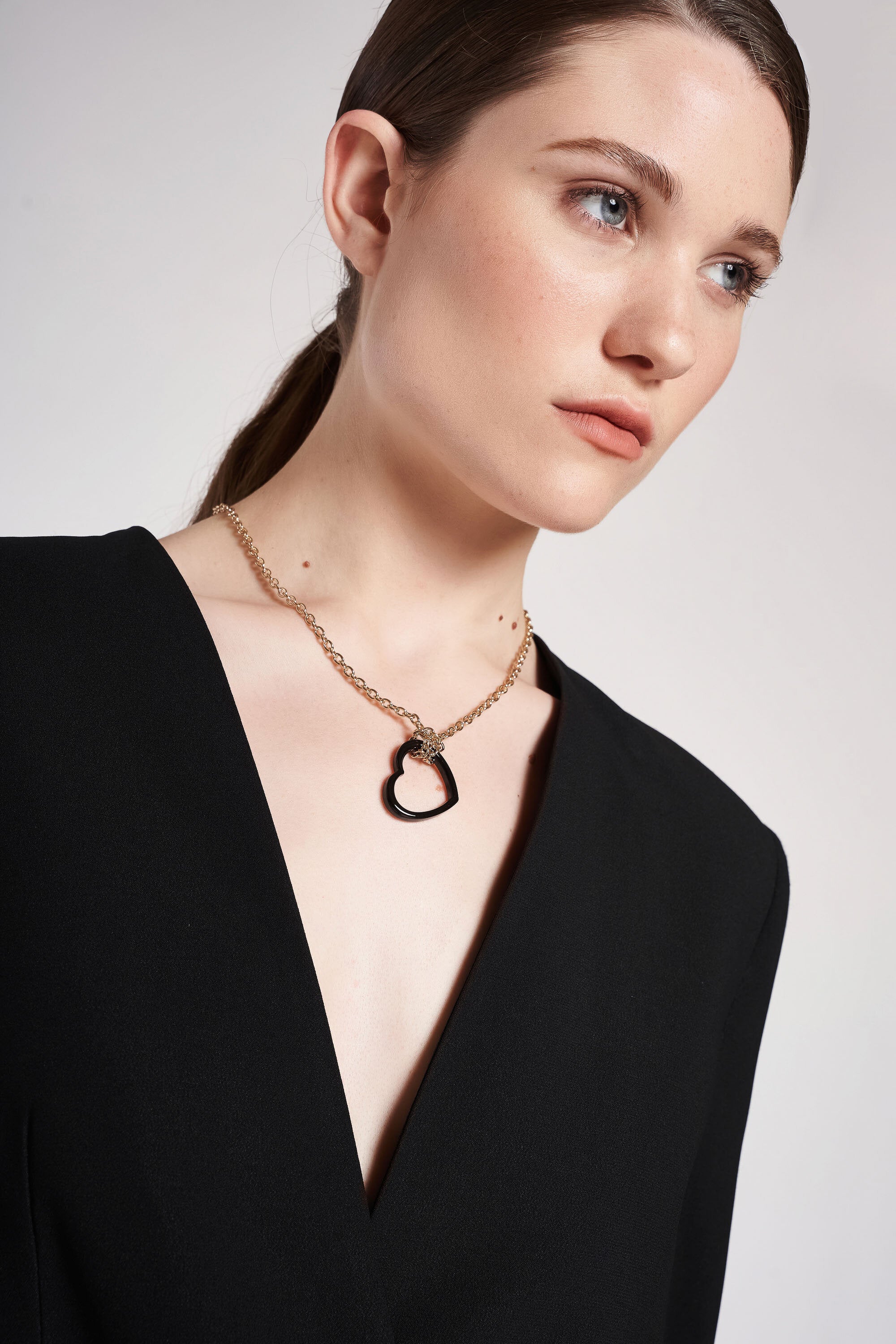 Collana a catena, con ciondolo a cuore smaltato nero. Chiusura con moschettone e catenella regola...Learn more