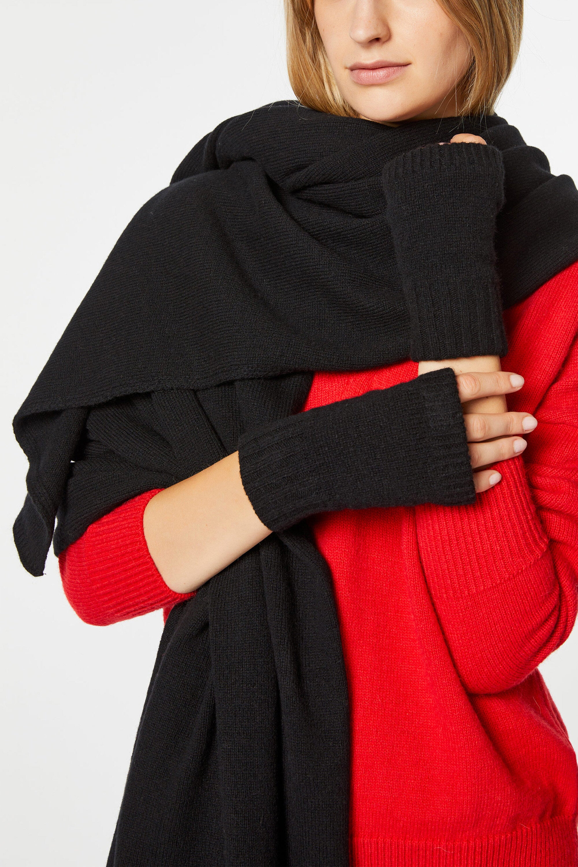 Guanti a mezze dita in lana grossa con bordi lavorati a coste.