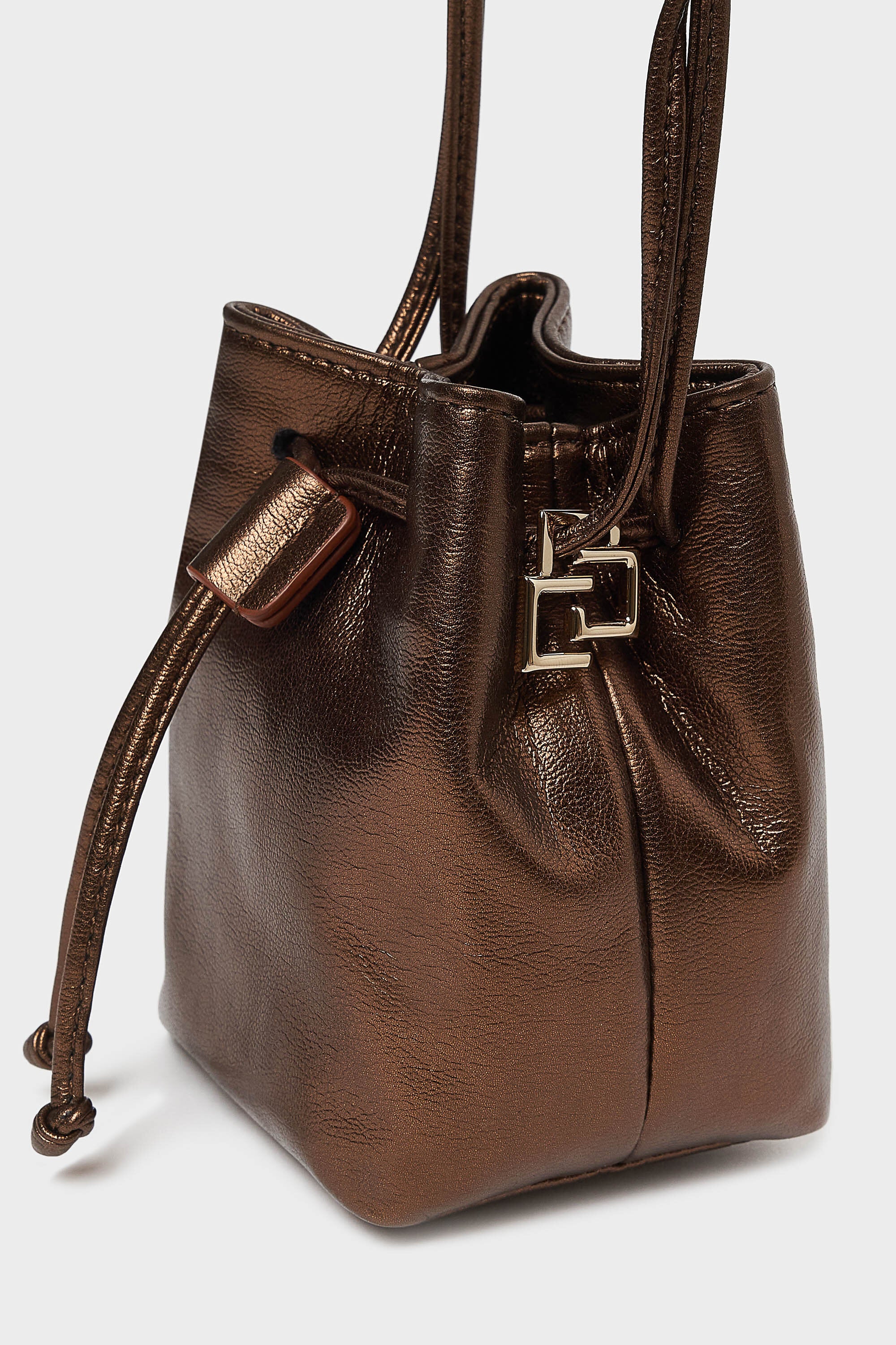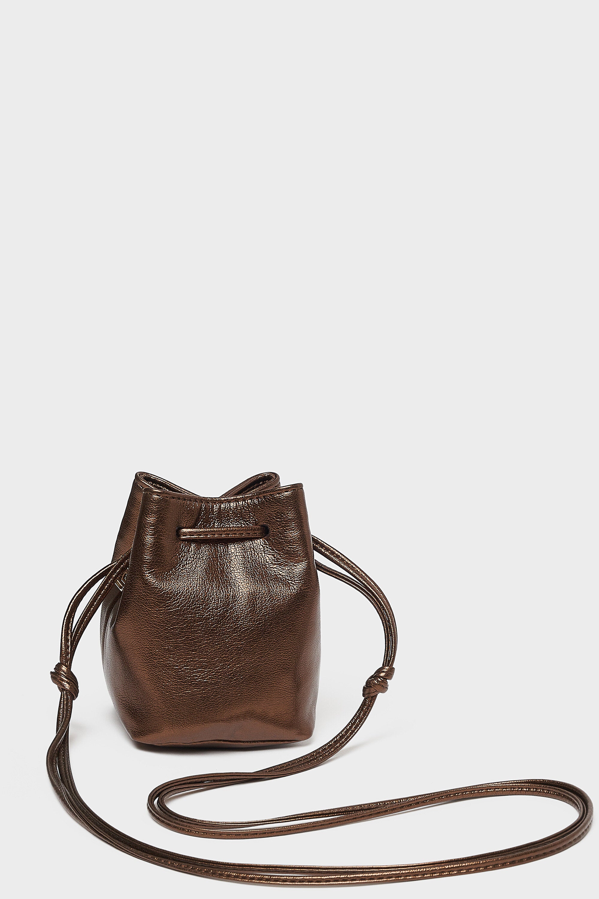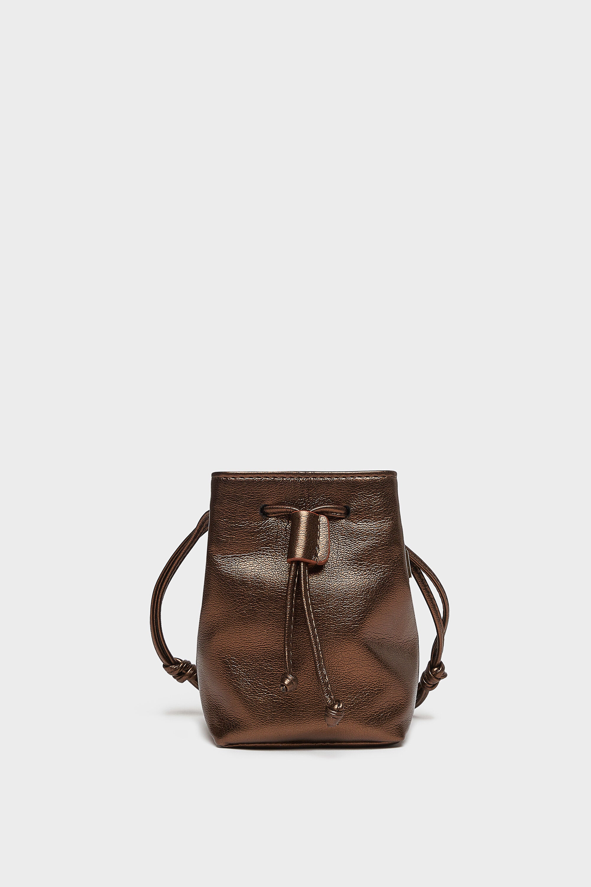 Mini bag a sacchetto in ecopelle satinata. Chiusura con coulisse regolabile e doppia tracolla con...Learn more