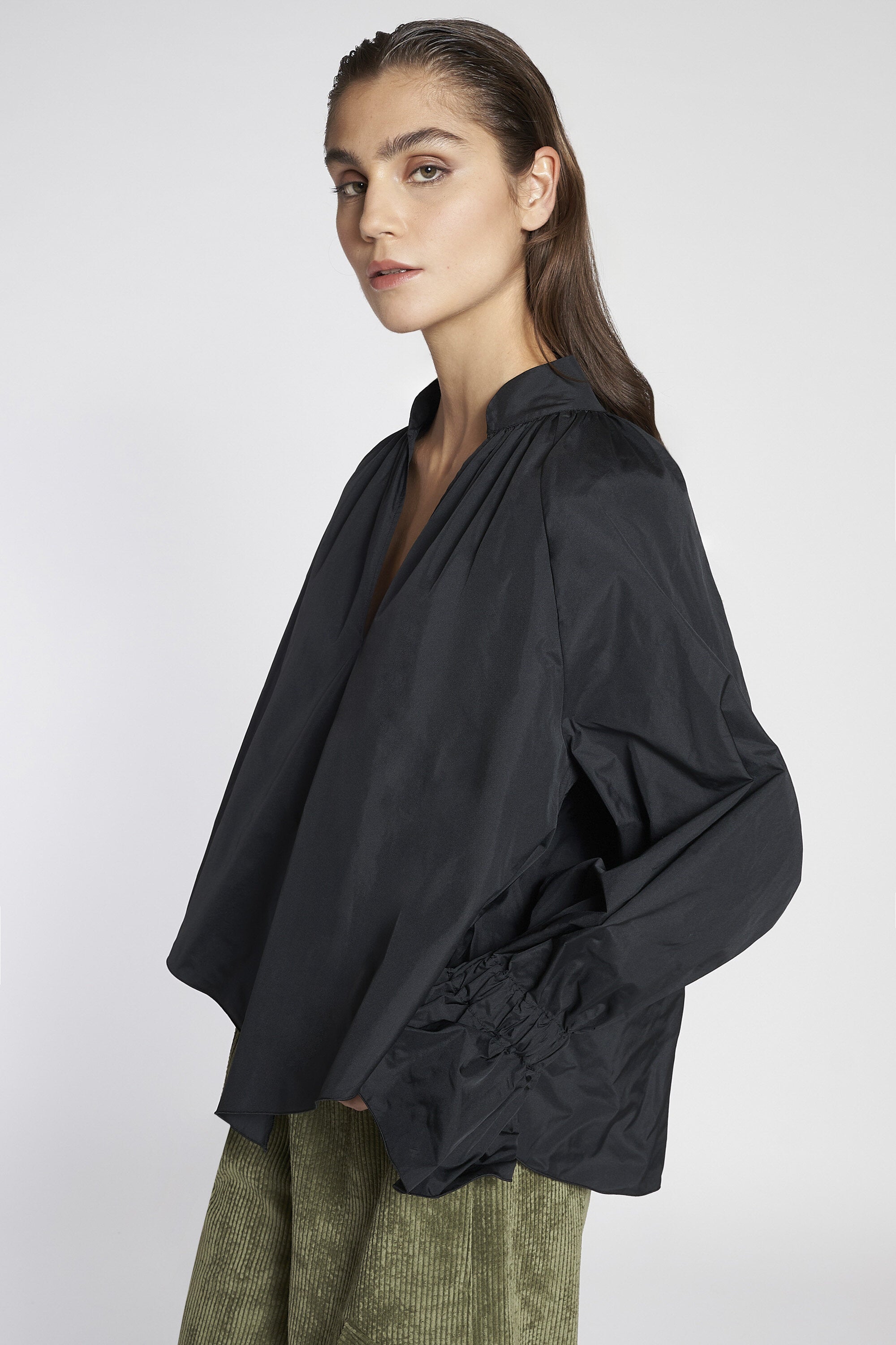 Camicia in taffetas con maniche ampie