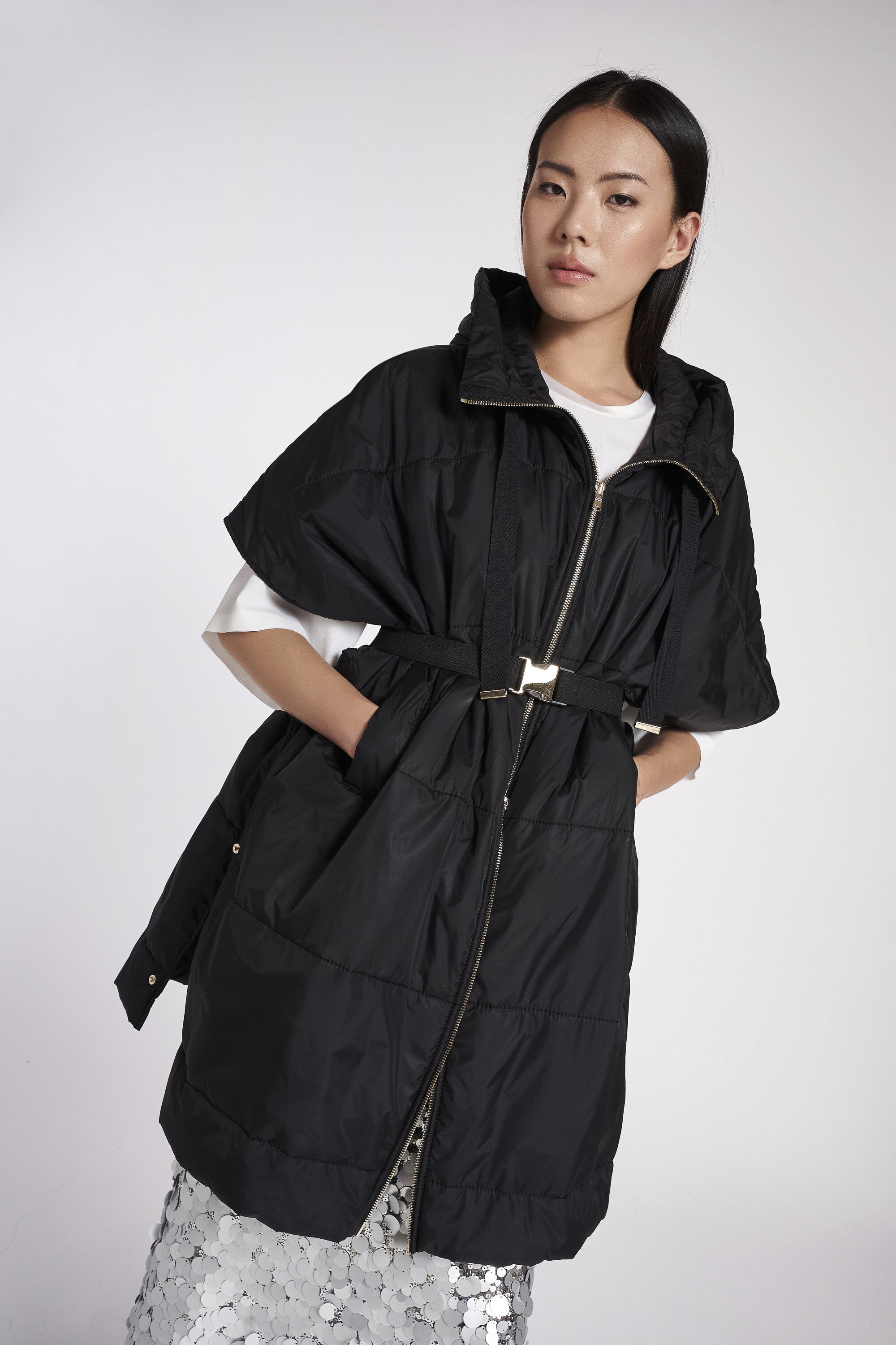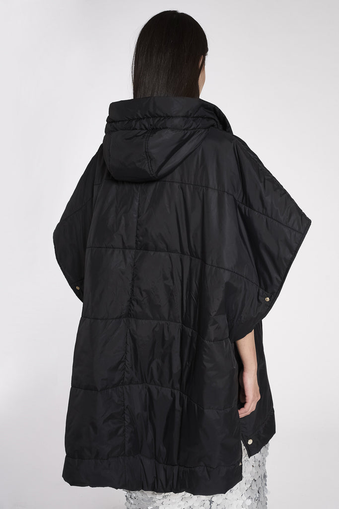 Mantella in nylon foderata e imbottita. Cappuccio con coulisse, allacciatura frontale con lampo d...Learn more