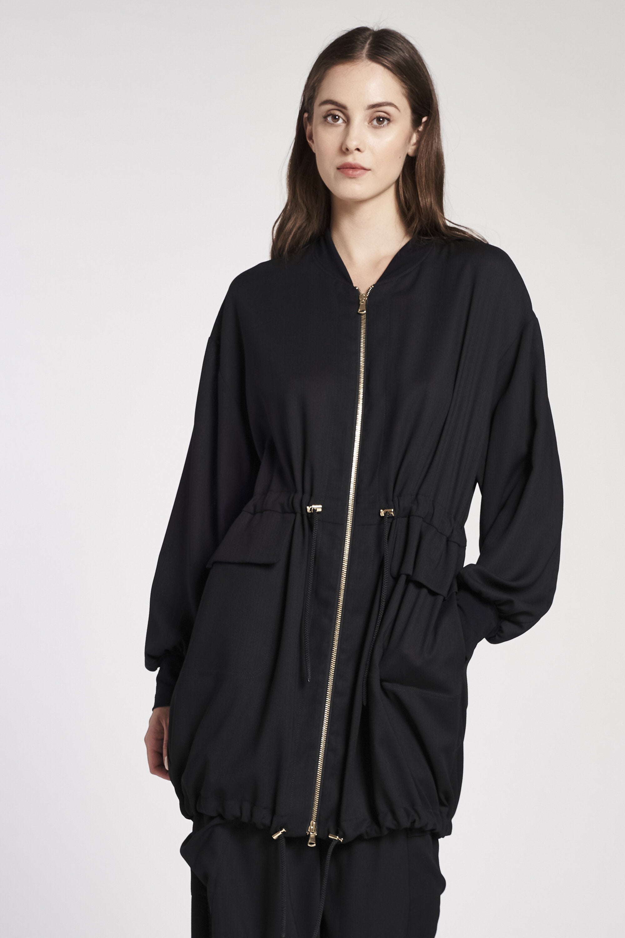 Parka in garza di lana con collo e polsini in jersey di viscosa. Coulisse in vita e nel fondo con...Learn more