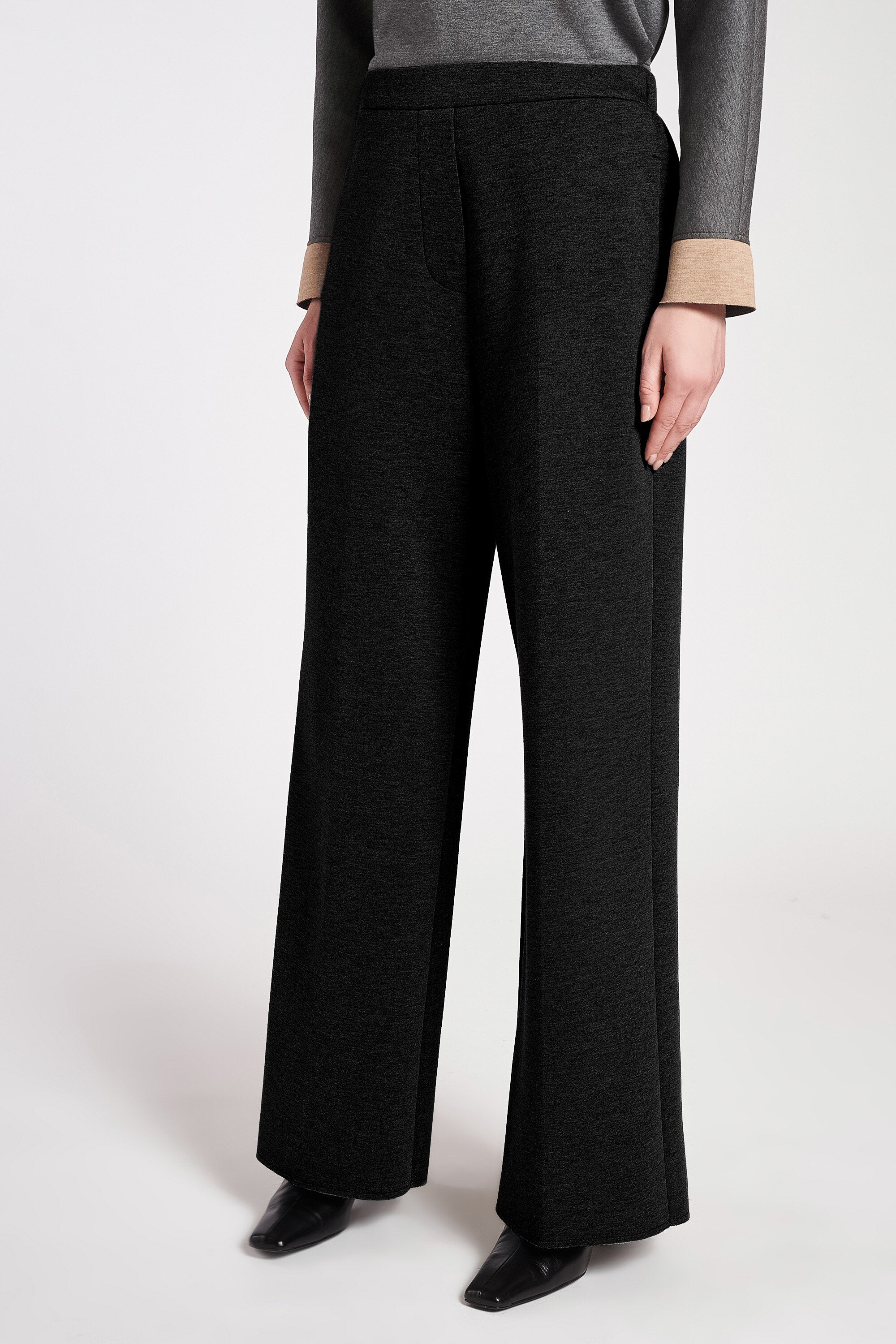 Pantaloni larghi in tessuto scuba doubleface con vita regolare e cavallo basso. Vita davanti con ...Learn more