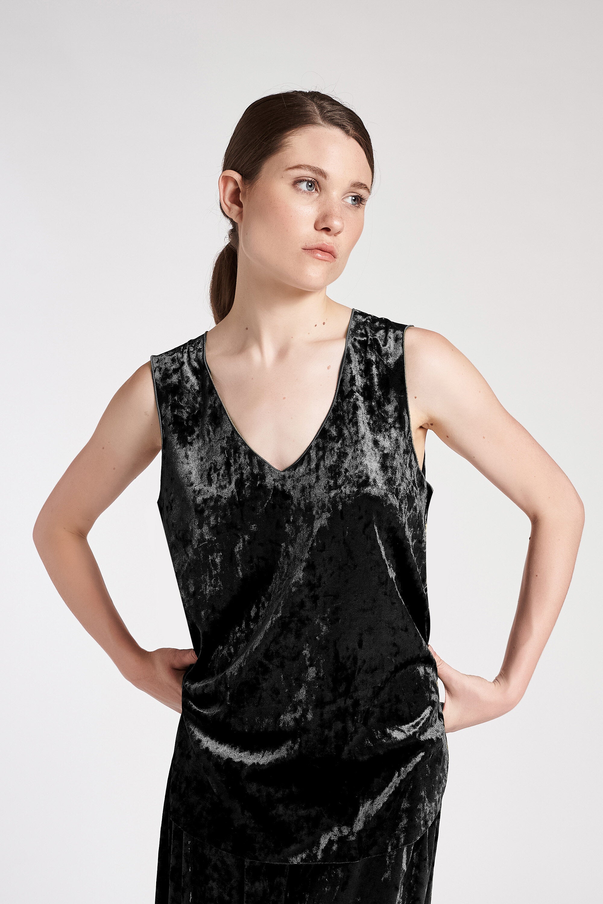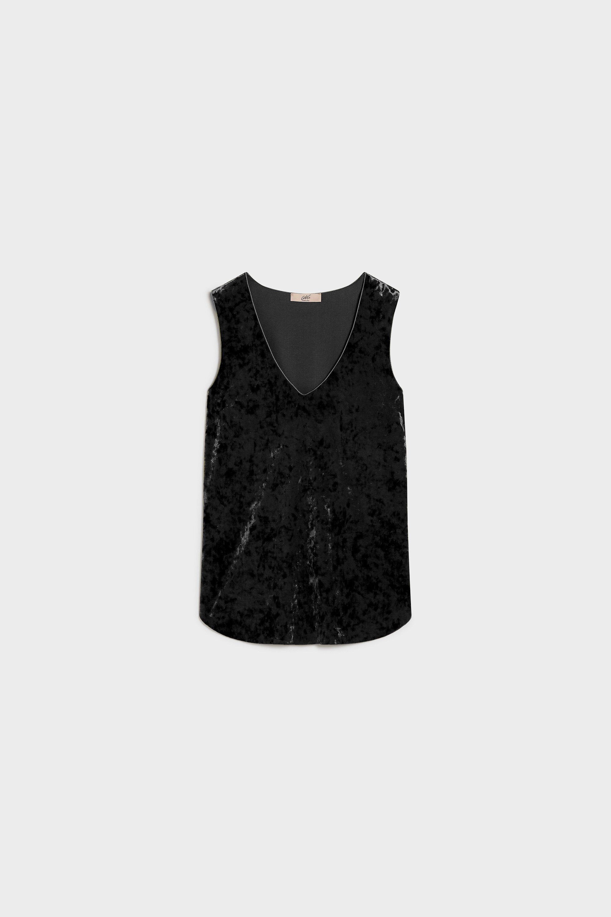 Canotta in velluto pannè elasticizzato. Scollatura a v sul davanti e spacchi laterali nei fianchi...Learn more
