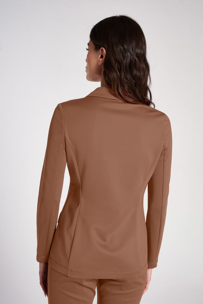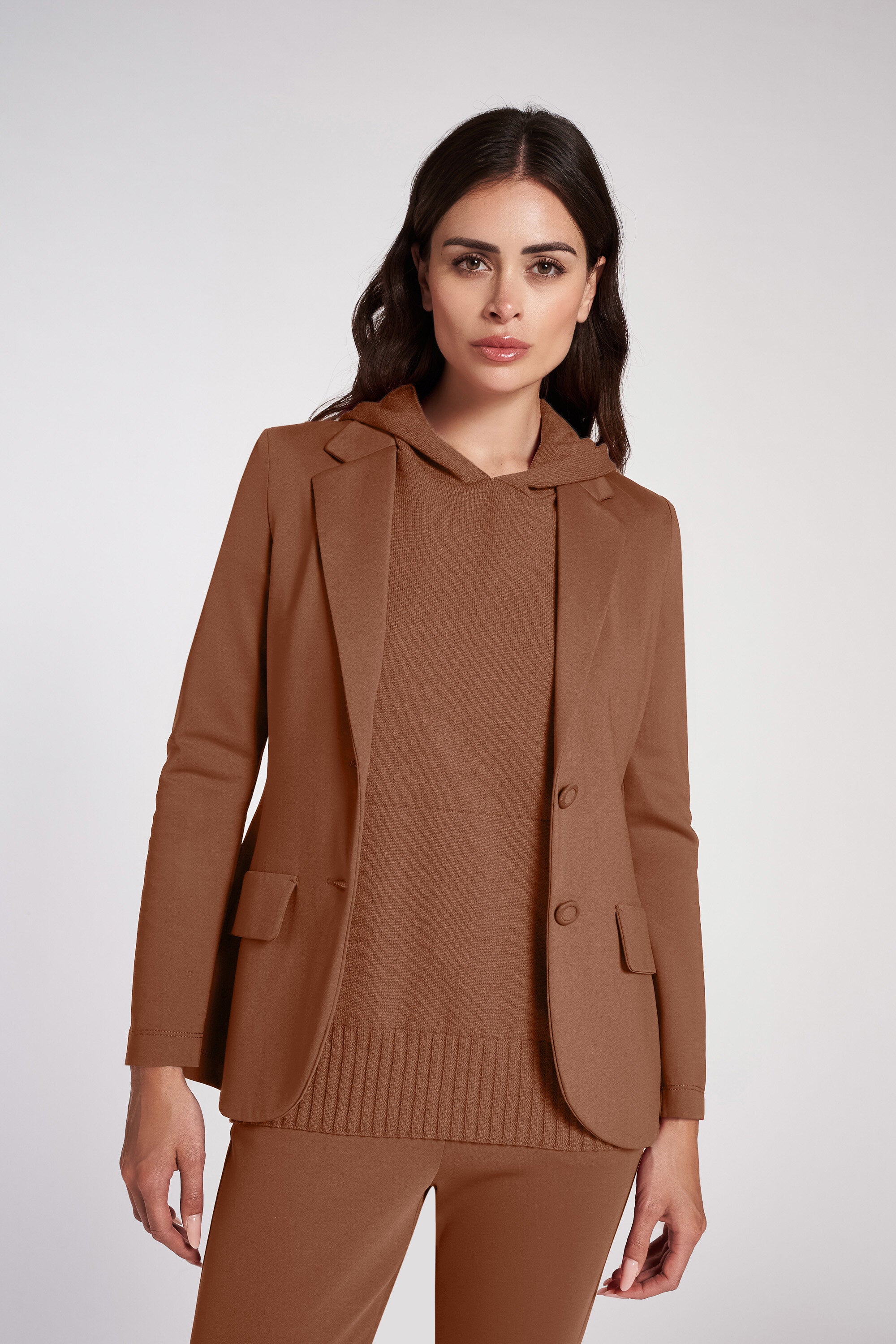Blazer monopetto sfoderato in jersey tecnico. Collo con revers e chiusura con bottoni ricoperti di tessuto. Patte applicate effetto tasca. Lunghezza sotto ai fianchi.