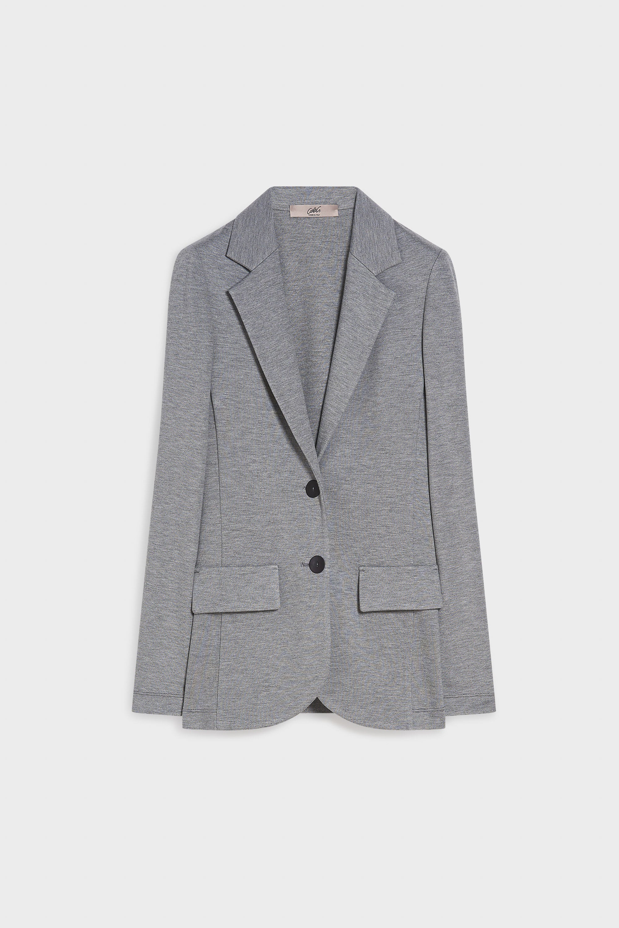 Blazer monopetto sfoderato in tessuto a maglia elasticizzato. Collo con revers e chiusura con bottoni in madreperla. Patte applicate effetto tasca. Lunghezza sotto ai fianchi.