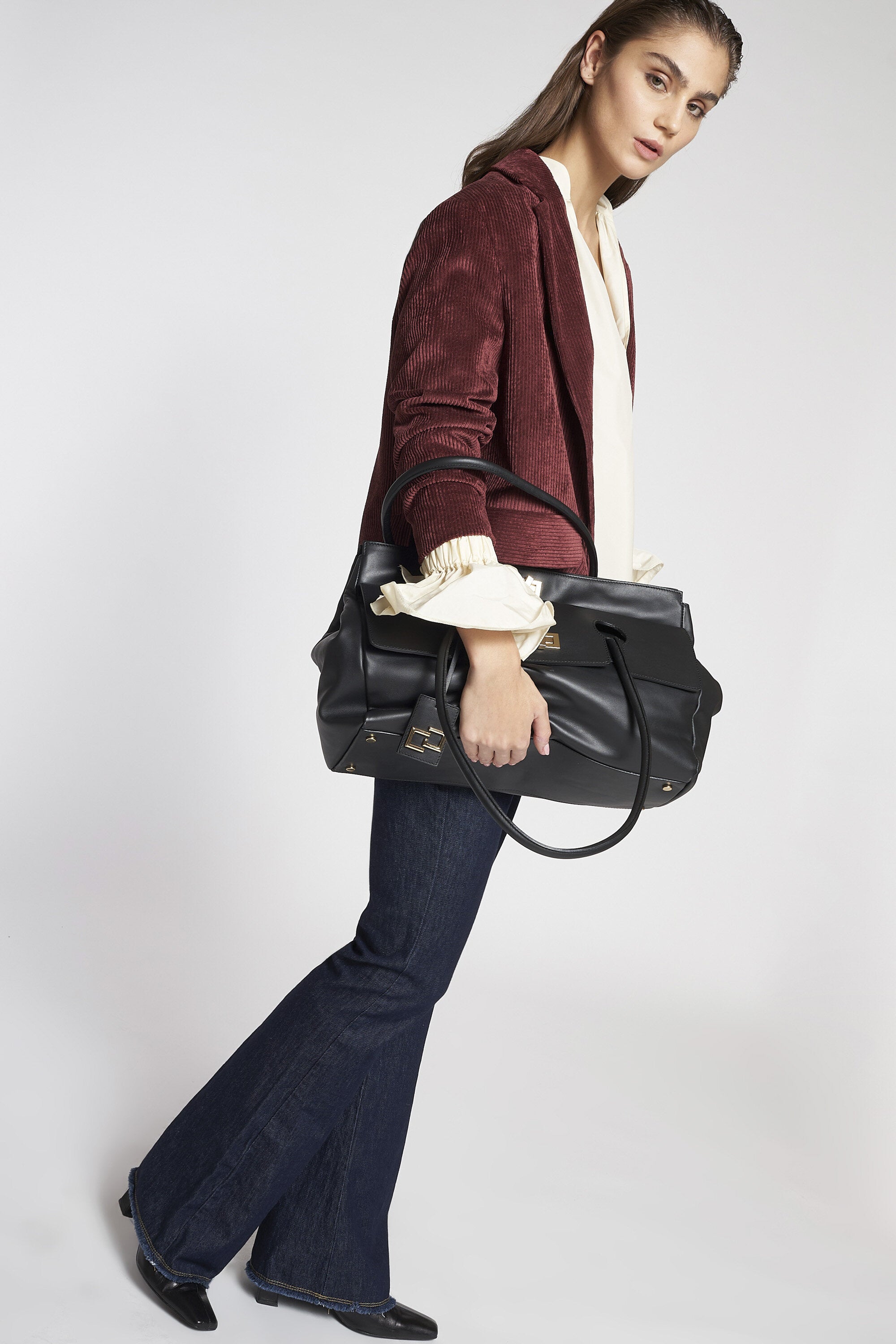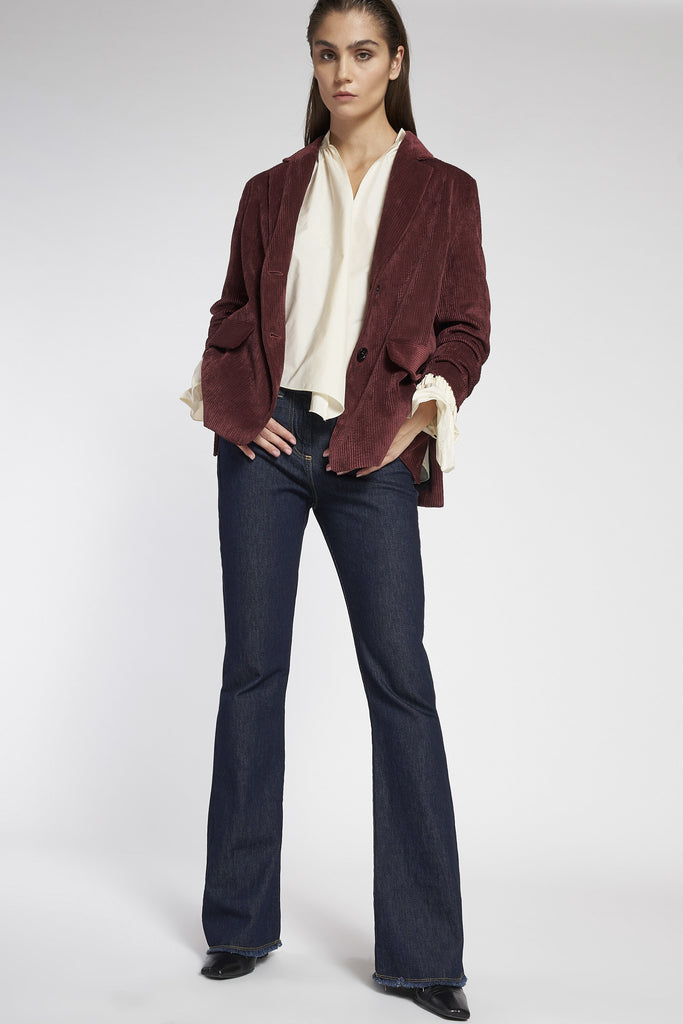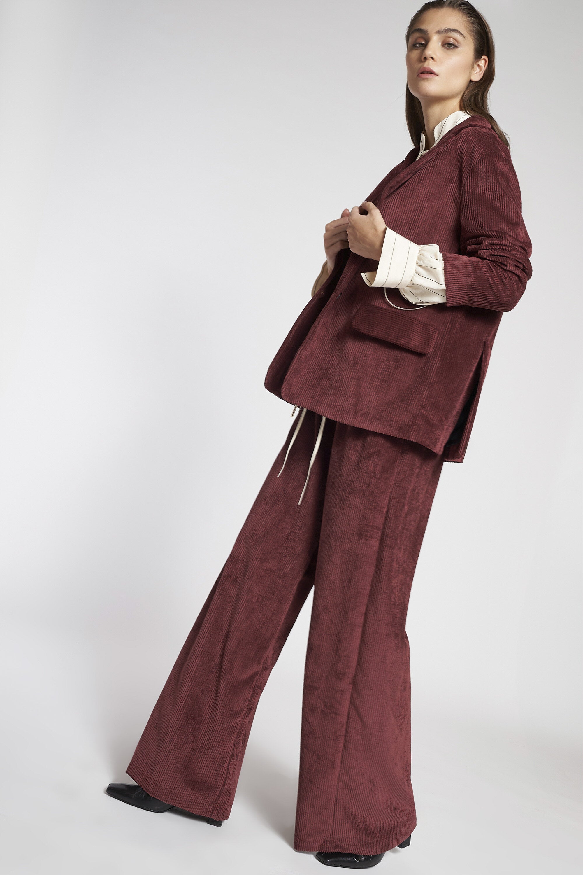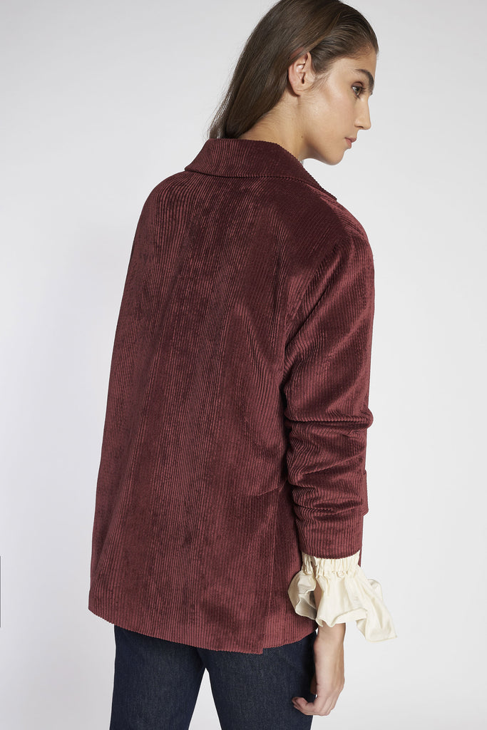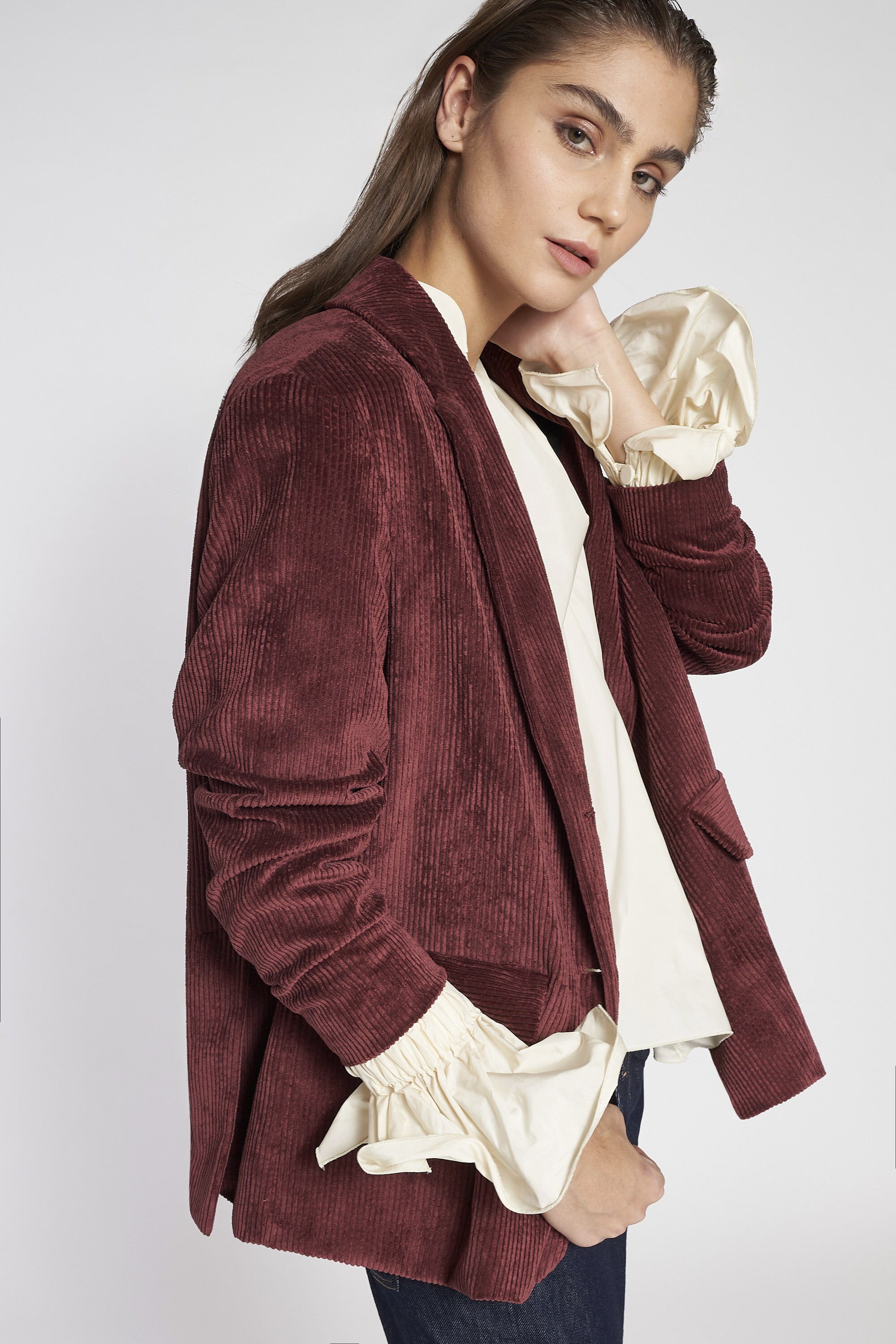 Blazer oversize foderato in velluto a coste. Chiusura con bottoni eco-corno. Patte applicate effe...Learn more