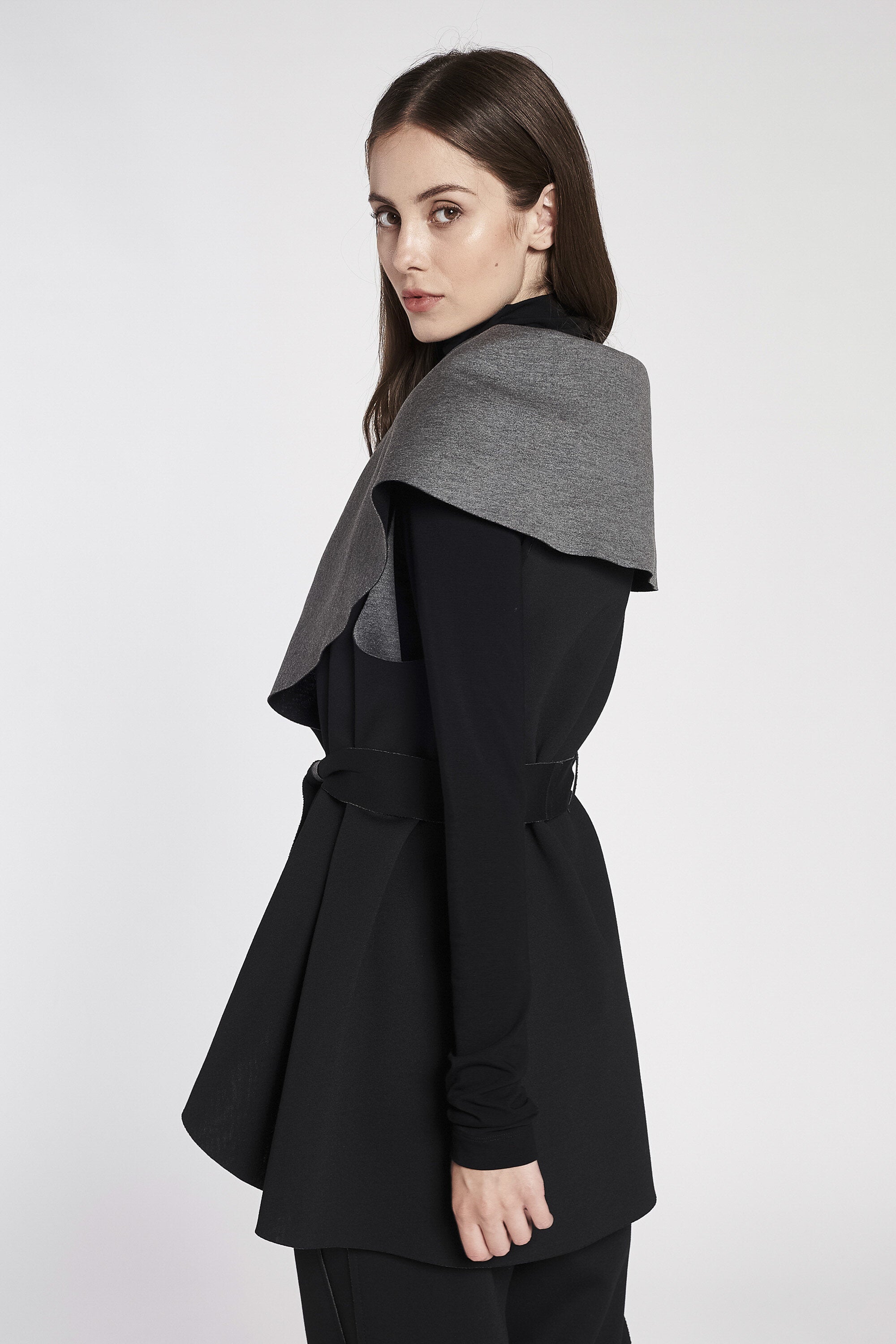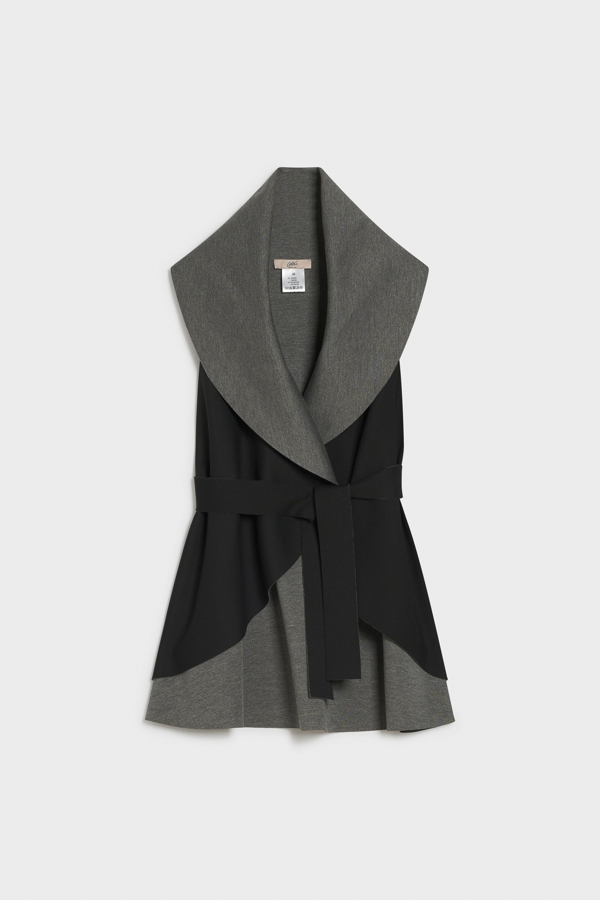 Gilet in tessuto scuba doubleface da poter indossare anche a rovescio. Ampio collo a scialle, pas...Learn more