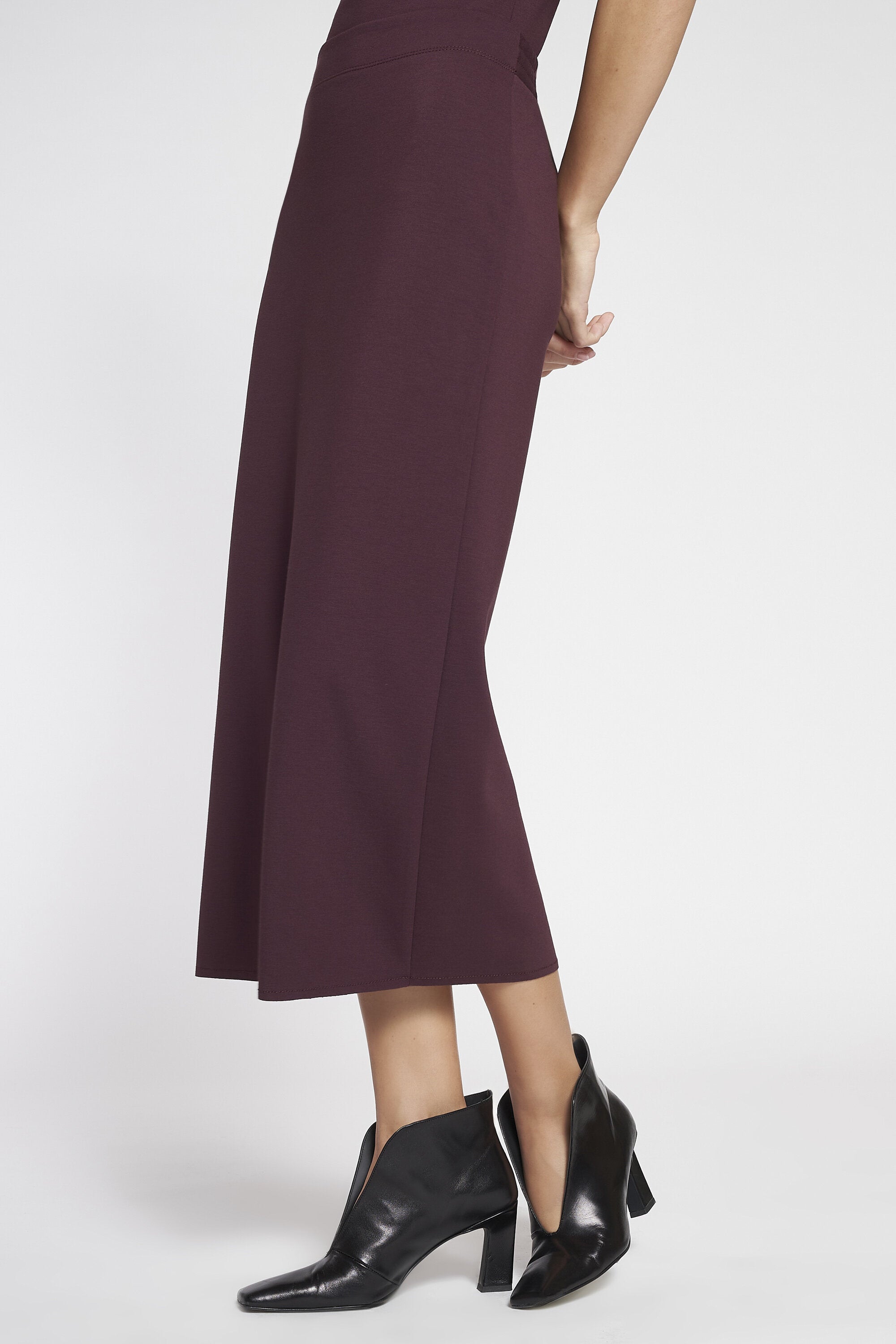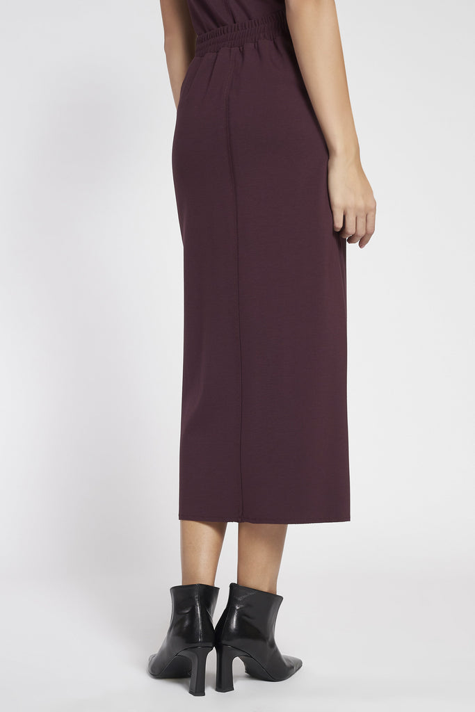 Gonna midi in maglia stoffa elasticizzata. Vita alta con fascione, elastico sul retro. Linea aderente.