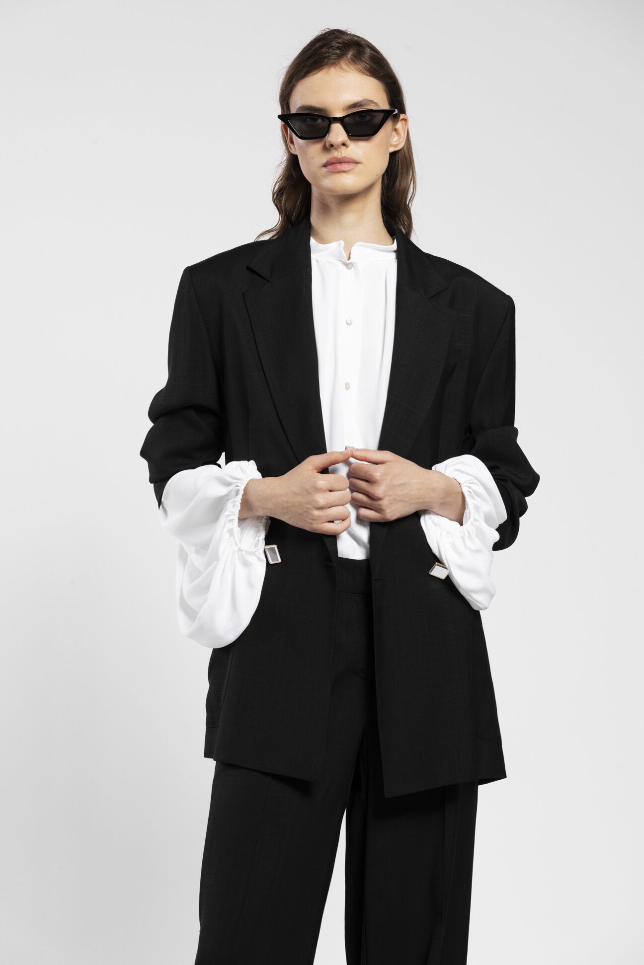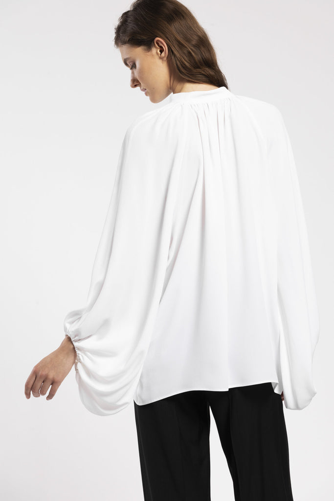 Camicia in crepe de chine con collo a fascetta e allacciatura con bottoni madreperla. Maniche lun...Learn more