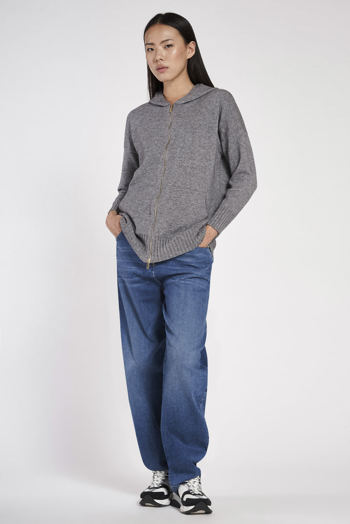 Felpa in viscosa elasticizzata con cappuccio. Fondo e polsini con lavorazione a coste. Linea morb...Learn more