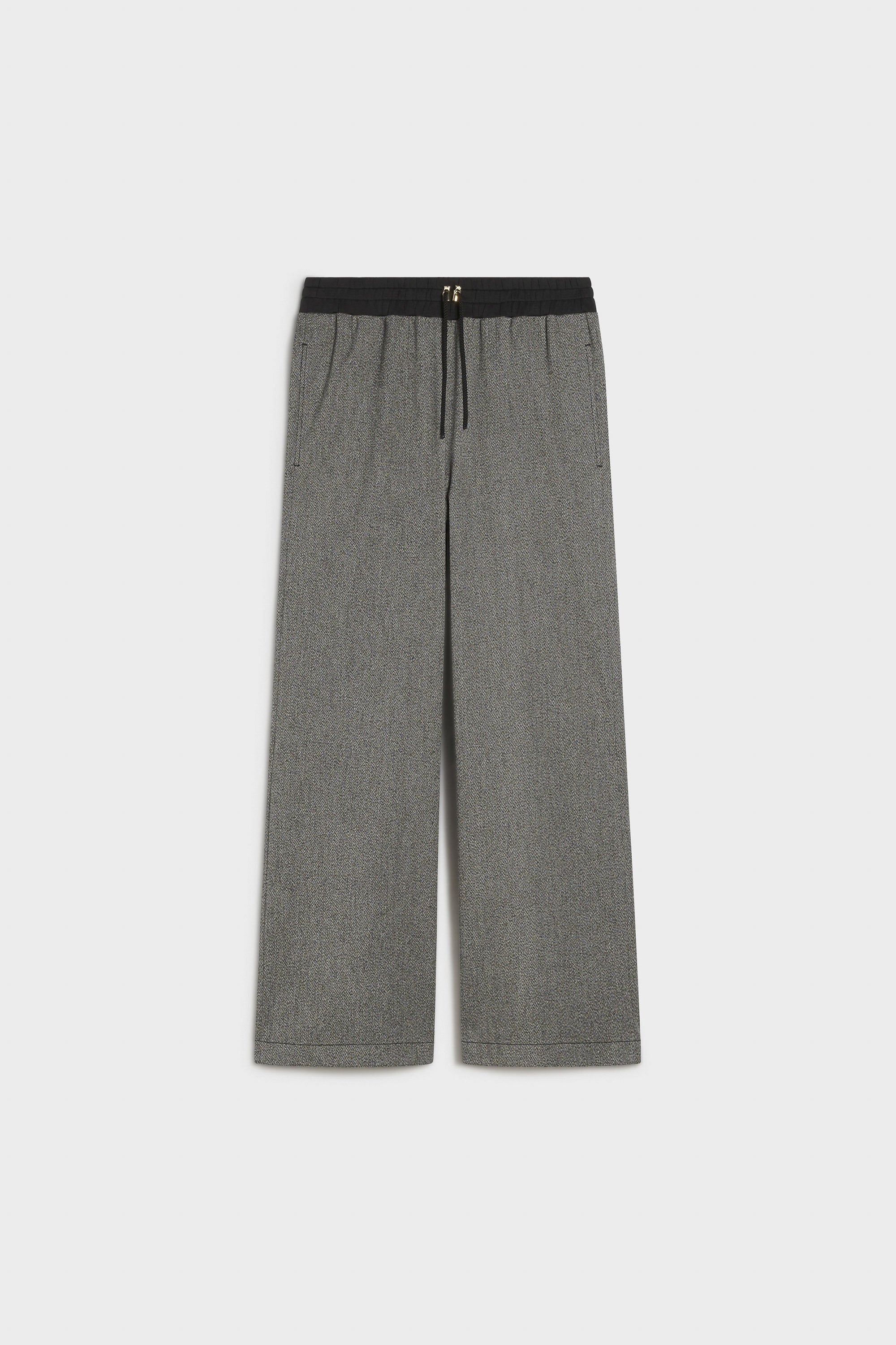 Pantaloni larghi in tinto filo elasticizzato con vita regolare e cavallo basso. Fascione con elas...Learn more