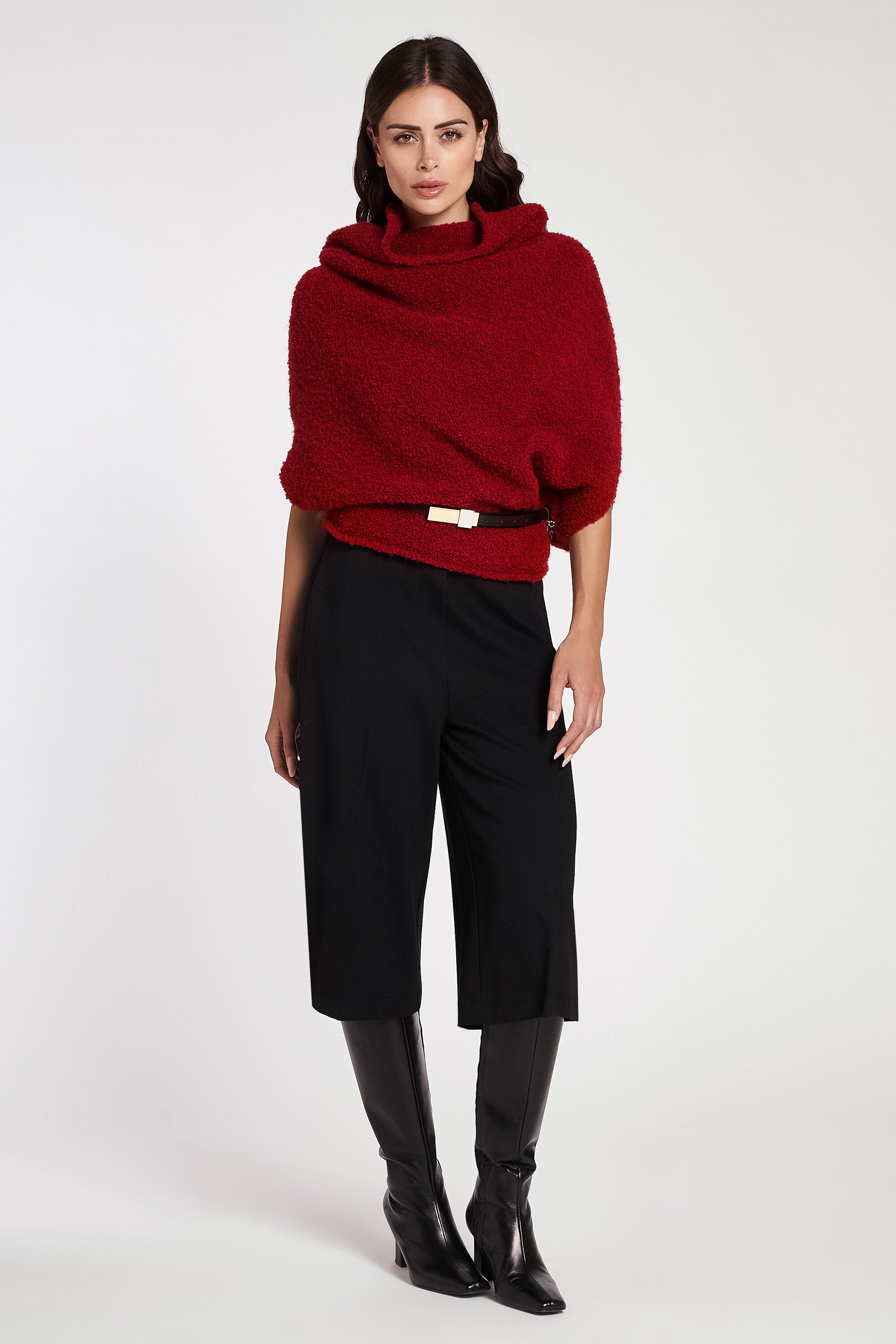 Cappa in bouclè a collo alto.. Linea morbida, lunghezza ai fianchi.