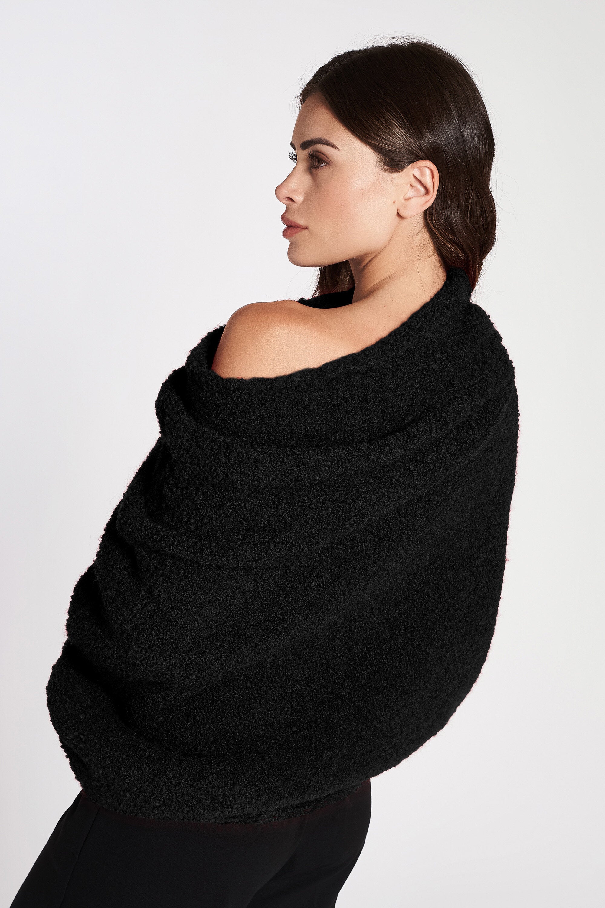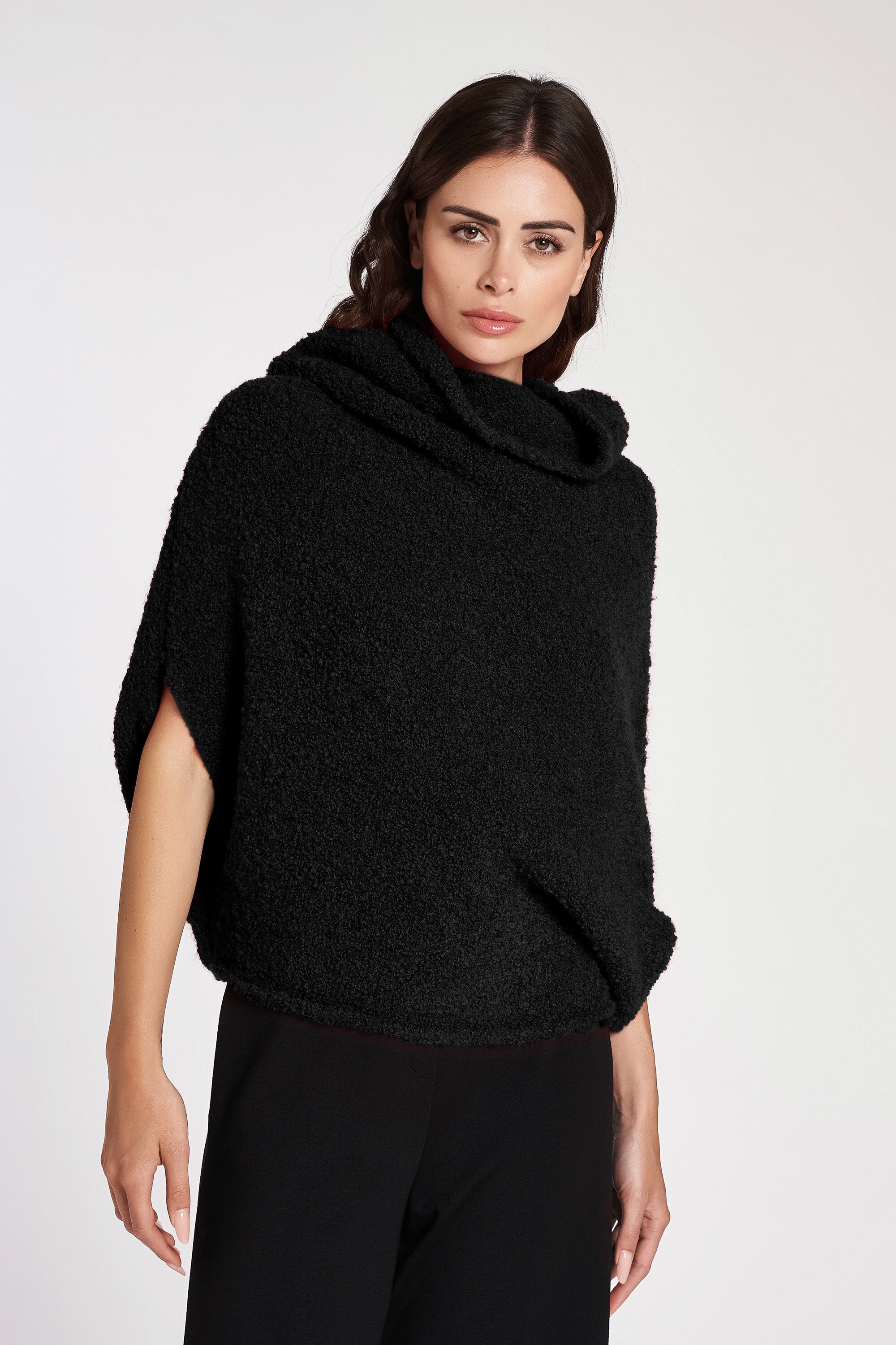 Cappa in bouclè a collo alto.. Linea morbida, lunghezza ai fianchi.