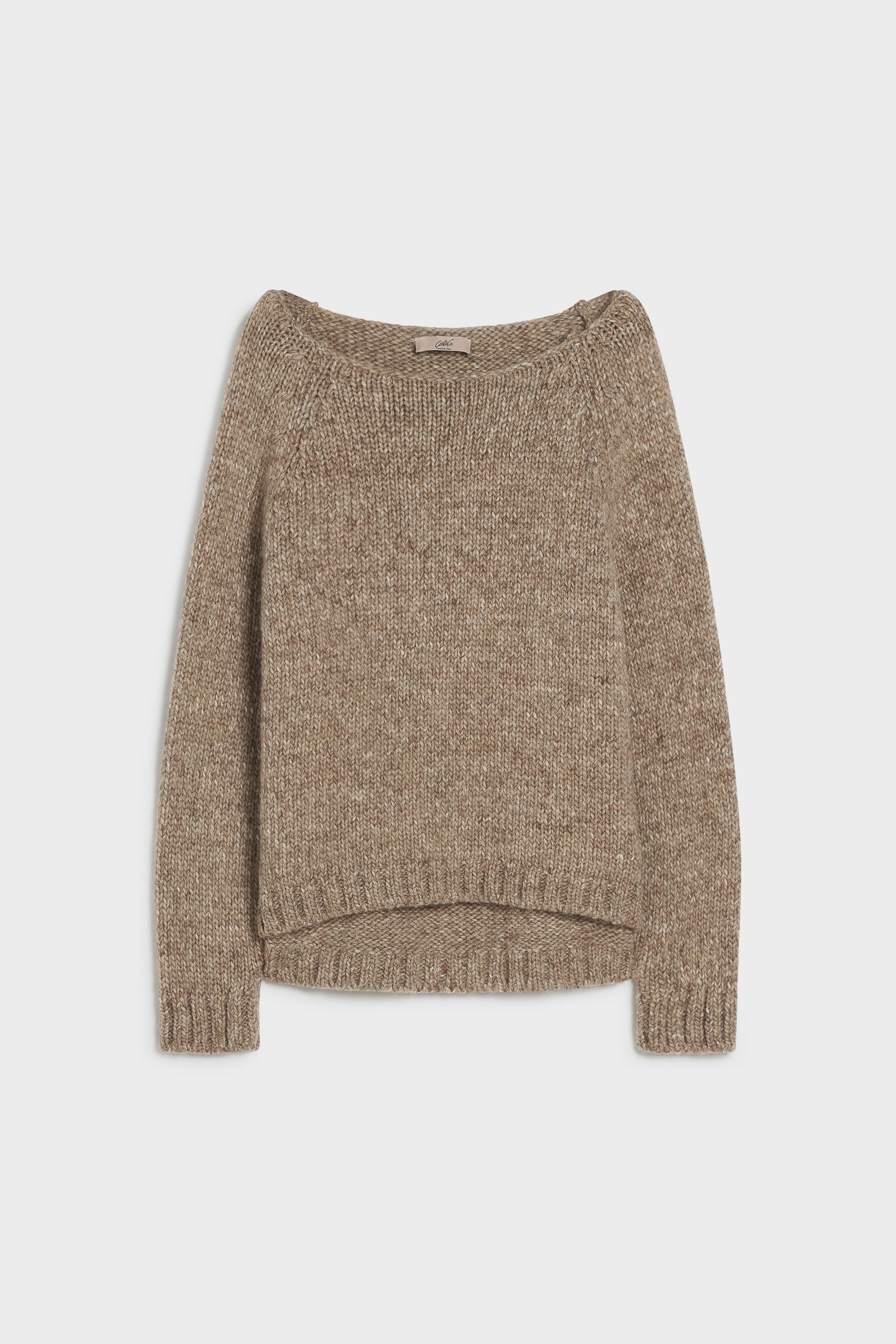 Maglia scollo a barchetta in lana grossa multicolor a maniche lunghe. Fondo e polsini con lavoraz...Learn more