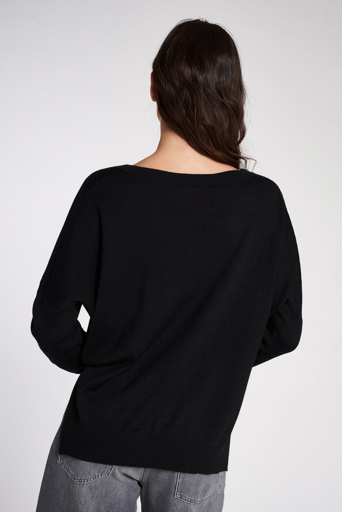 MAGLIA SCOLLO A V IN LANA MERINOS - 42 / NERO is backordered and will ship as soon as it is back in stock.