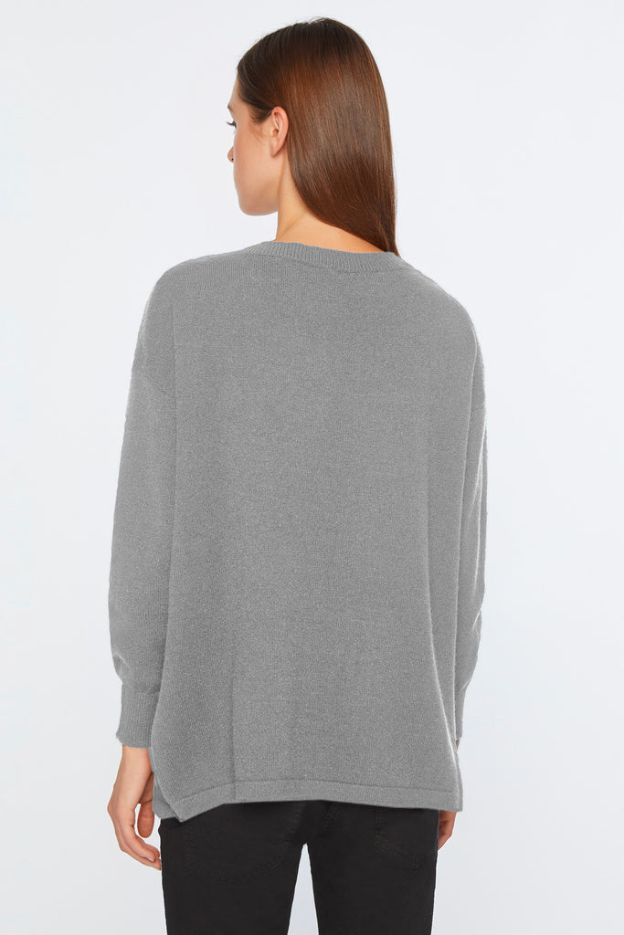 Maglia con scollo a barchetta in viscosa elasticizzata dalla linea, con spacchetti laterali. Maniche lunghe e spalle scese. Bordi rifiniti con lavorazione a coste. Lunghezza ai fianchi.