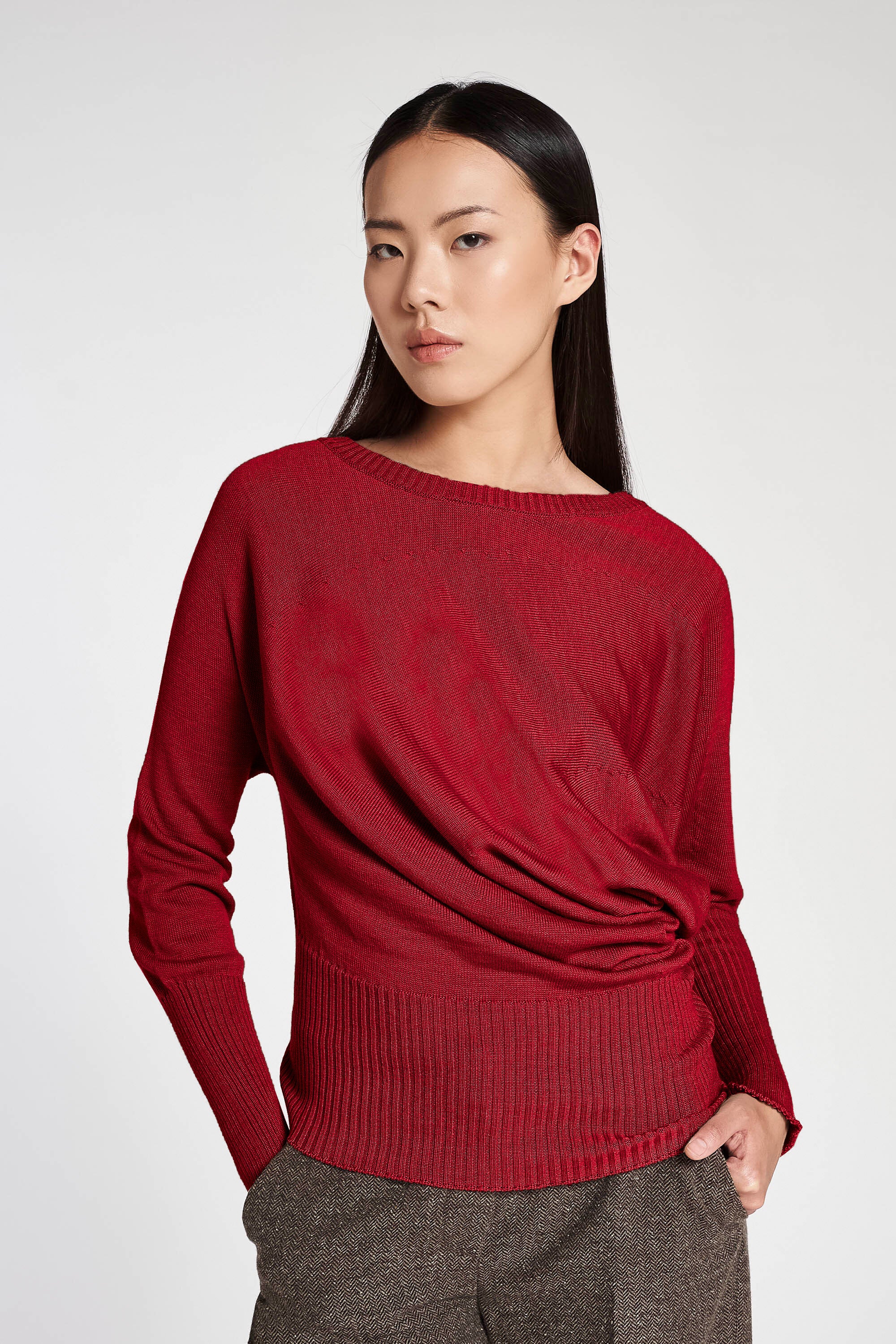 MAGLIA IN LANA MERINOS CON DRAPPEGGIO - 42 / BORDEAUX is backordered and will ship as soon as it is back in stock.