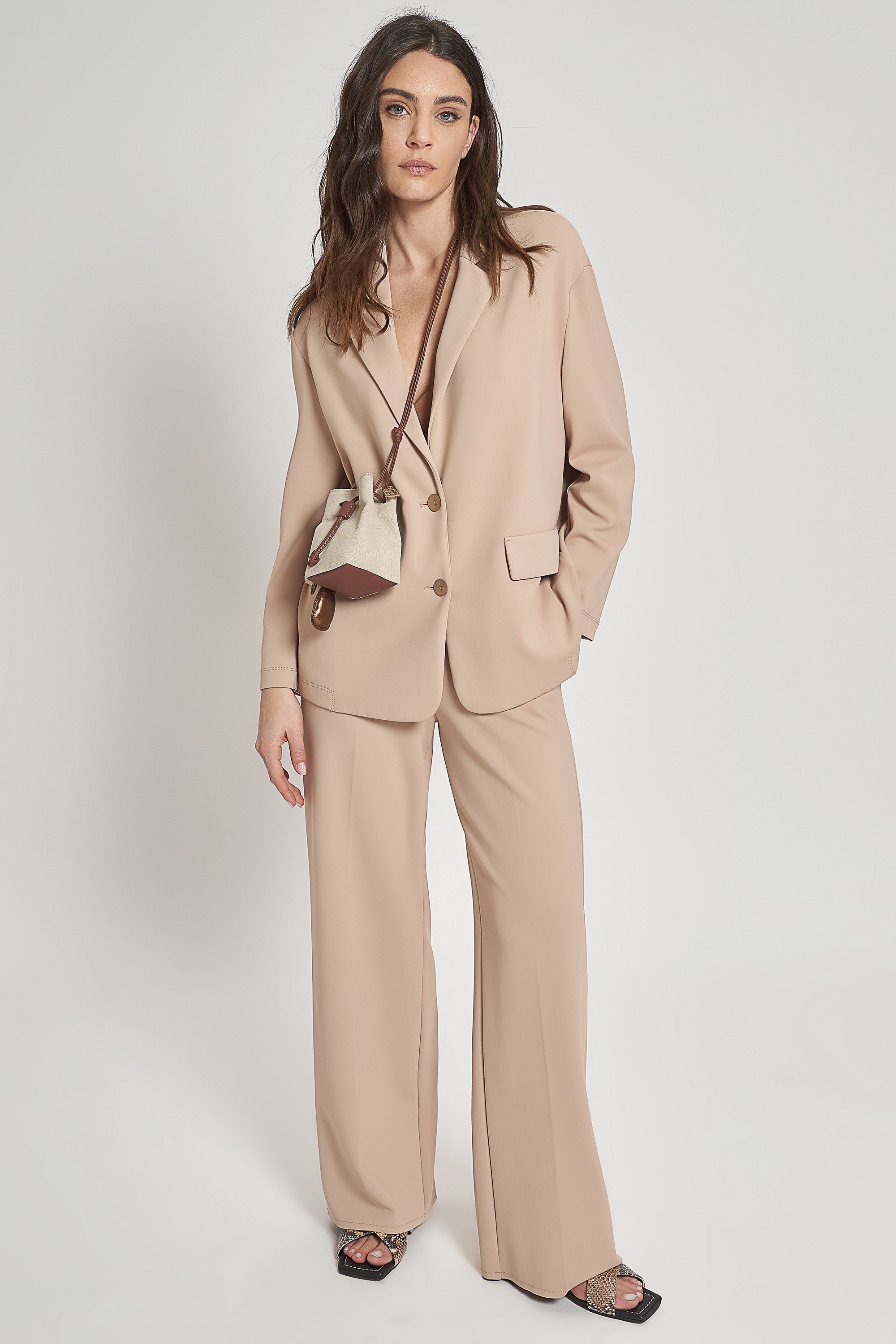 Pantaloni larghi in jersey tecnico con vita regolare e cavallo basso. Vita davanti con finta aper...Learn more