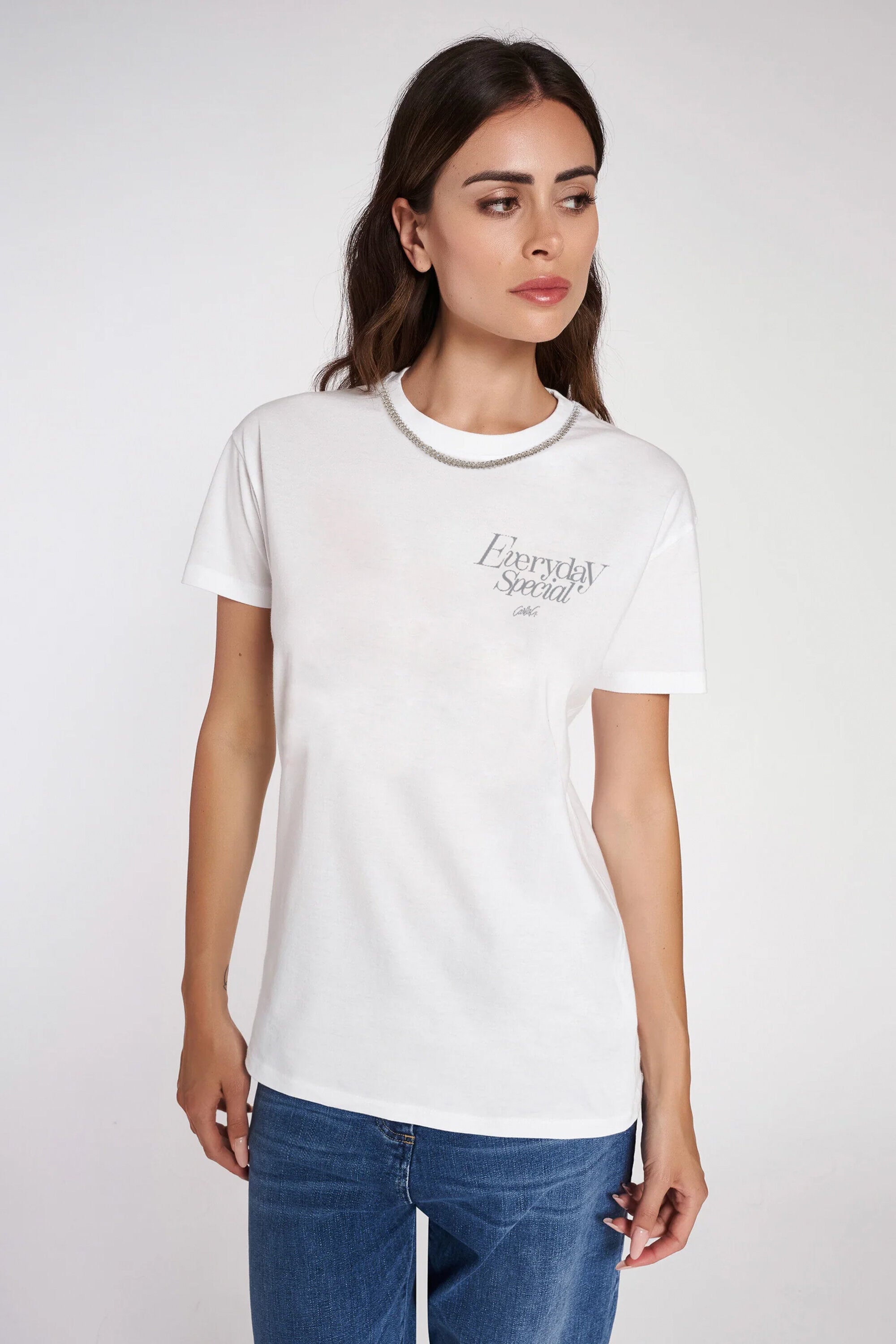 T-Shirt limited edition, con stampa "Everyday Special". Girocollo, passamaneria applicata a mano sulla parte frontale e maniche corte.