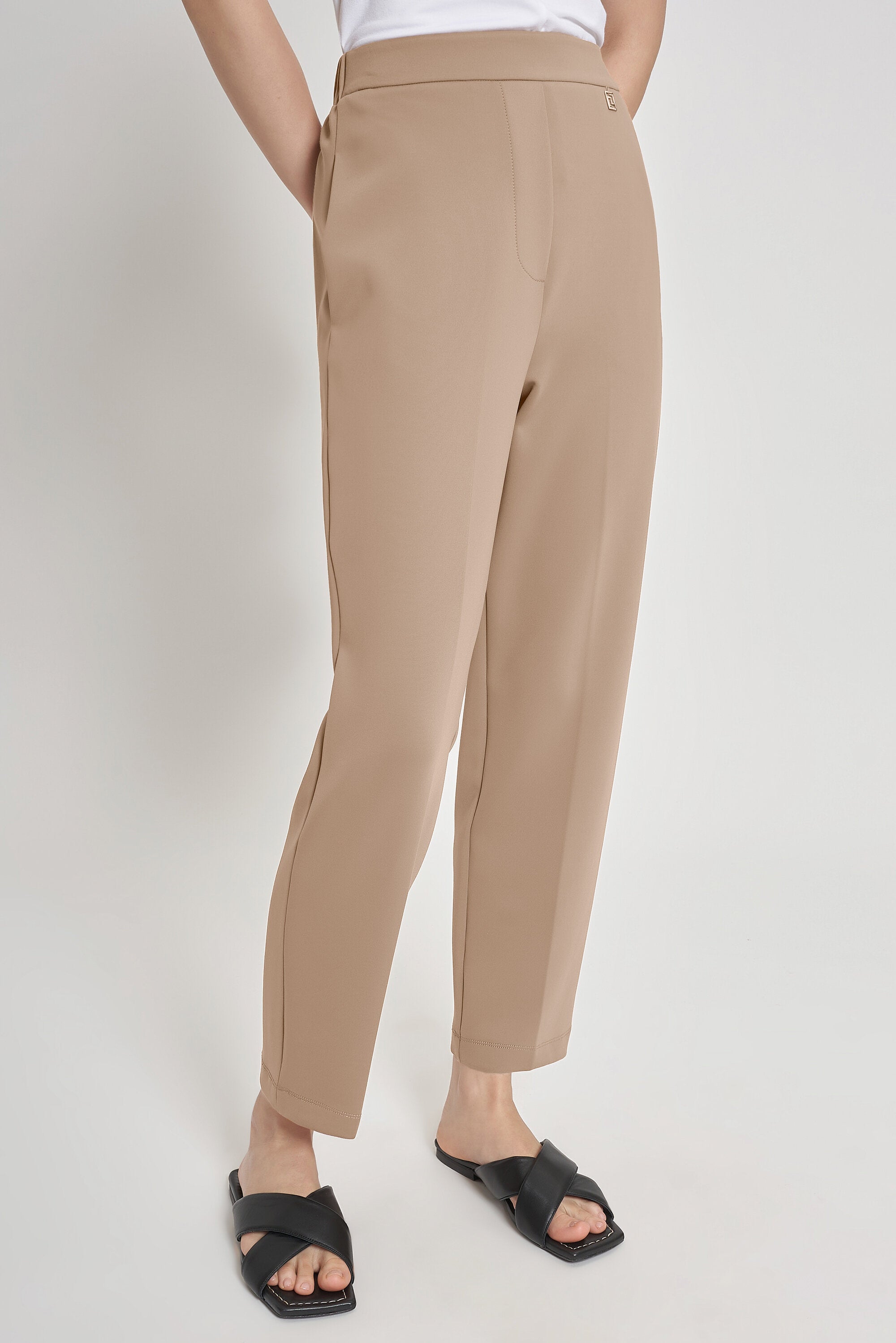 Pantaloni ampi in jersey tecnico con vita regolare e cavallo basso. Vita davanti con finta apertu...Learn more
