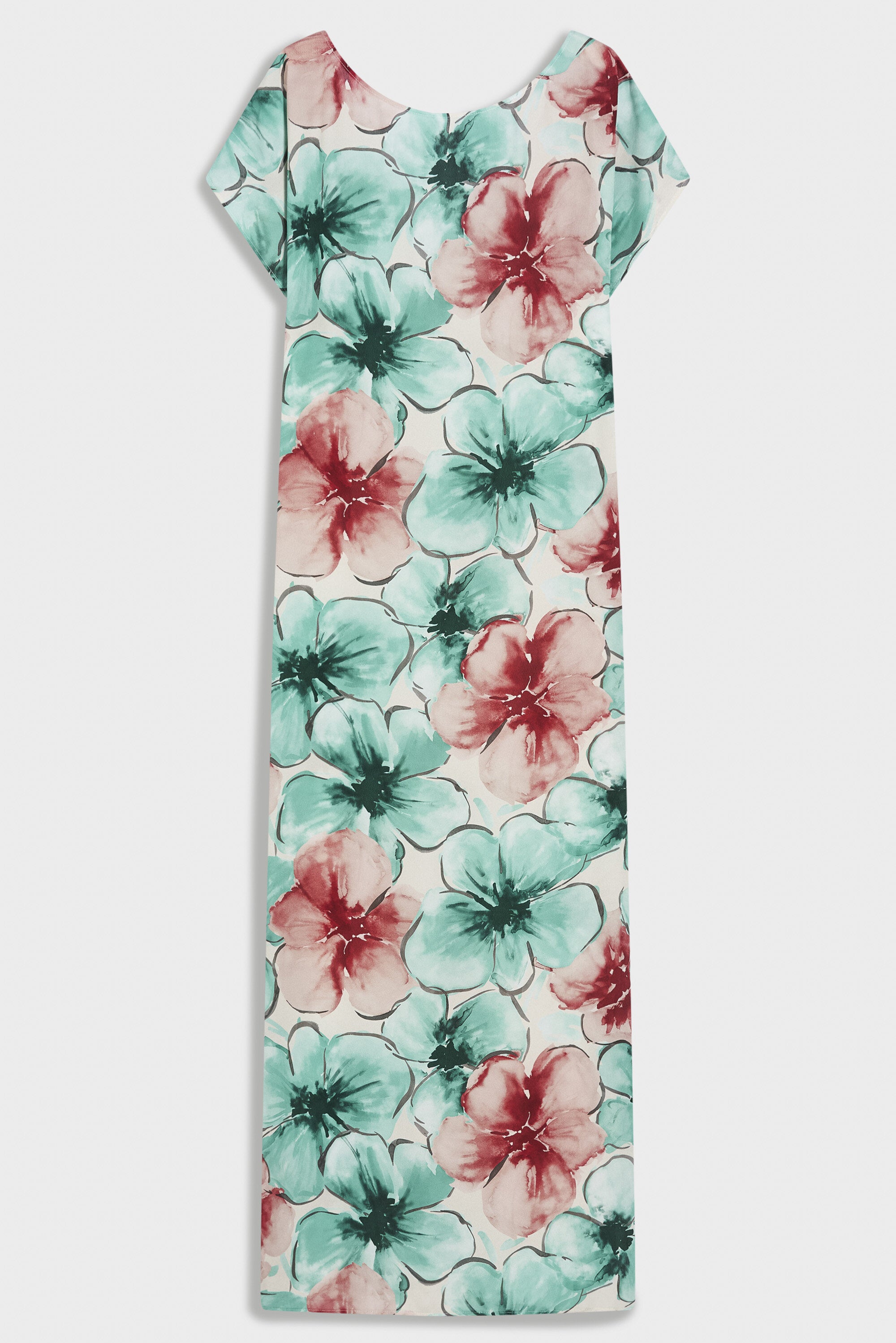 Abito con scollo a barchetta davanti e a V dietro, in viscosa a fantasia florale. Profondi spacch...Learn more
