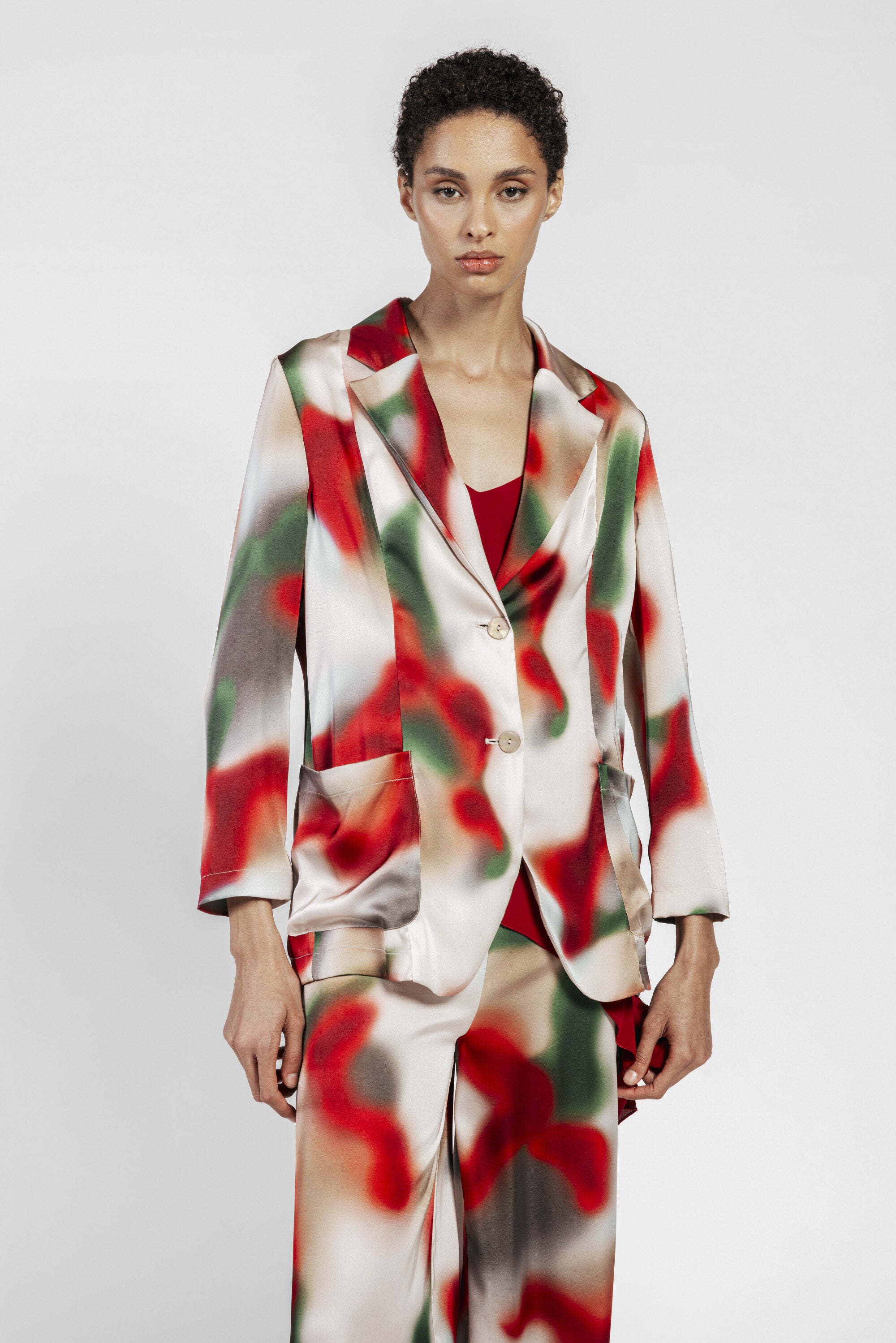 Blazer monopetto sfoderato in raso, a fantasia multicolor. Chiusura con bottoni madreperla. Ampie...Learn more