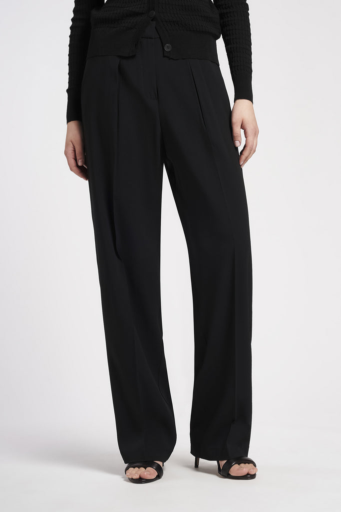 Pantalone largo in crepe di viscosa elasticizzata con vita regolare e cavallo basso. Chiusura a g...Learn more