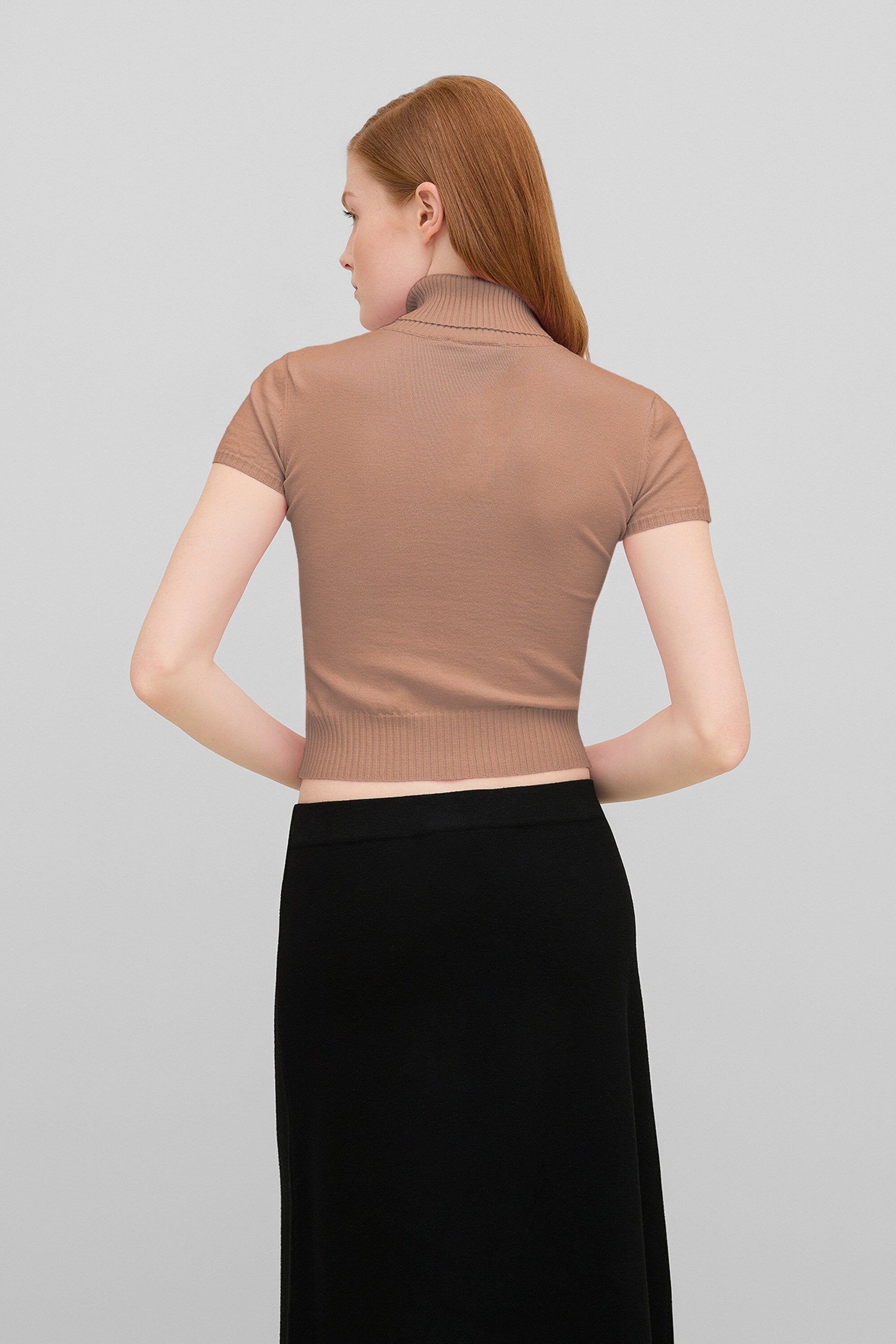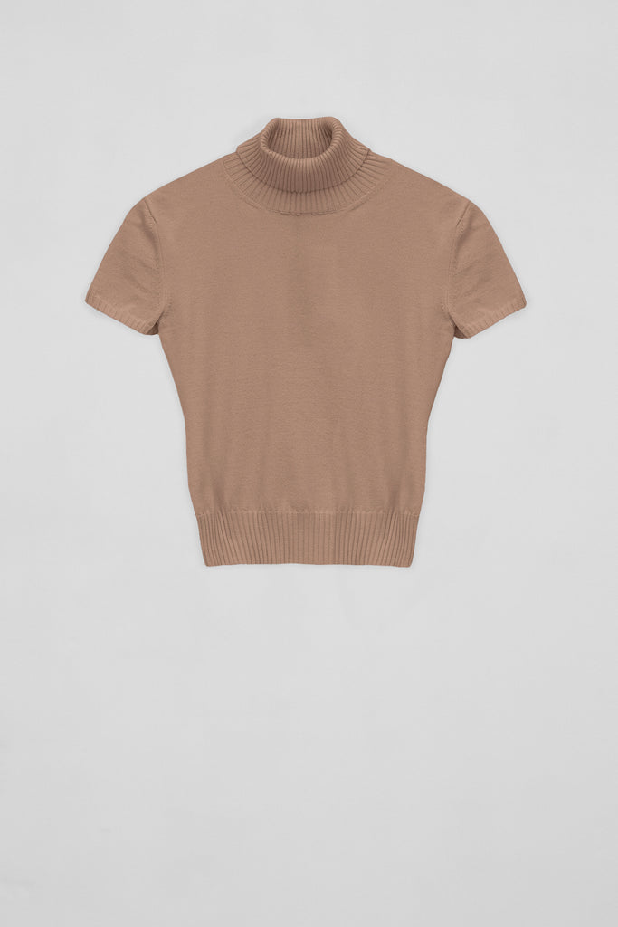 Maglia a maniche corte e collo alto in viscosa elasticizzata