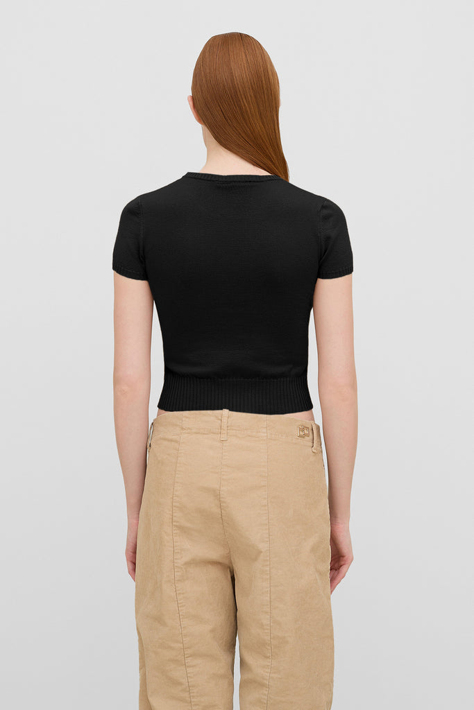 MAGLIA A MANICHE CORTE IN VISCOSA ELASTICIZZATA - 42 / NERO is backordered and will ship as soon as it is back in stock.