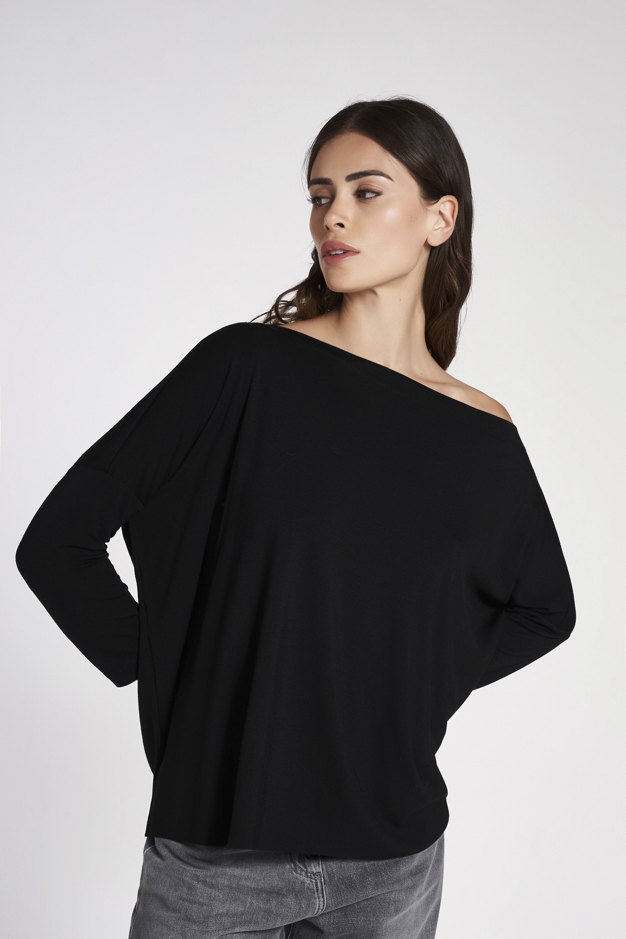 Maglia over a maniche lunghe in jersey di viscosa. Ampio scollo a barchetta asimmetrico. Fondo da...Learn more