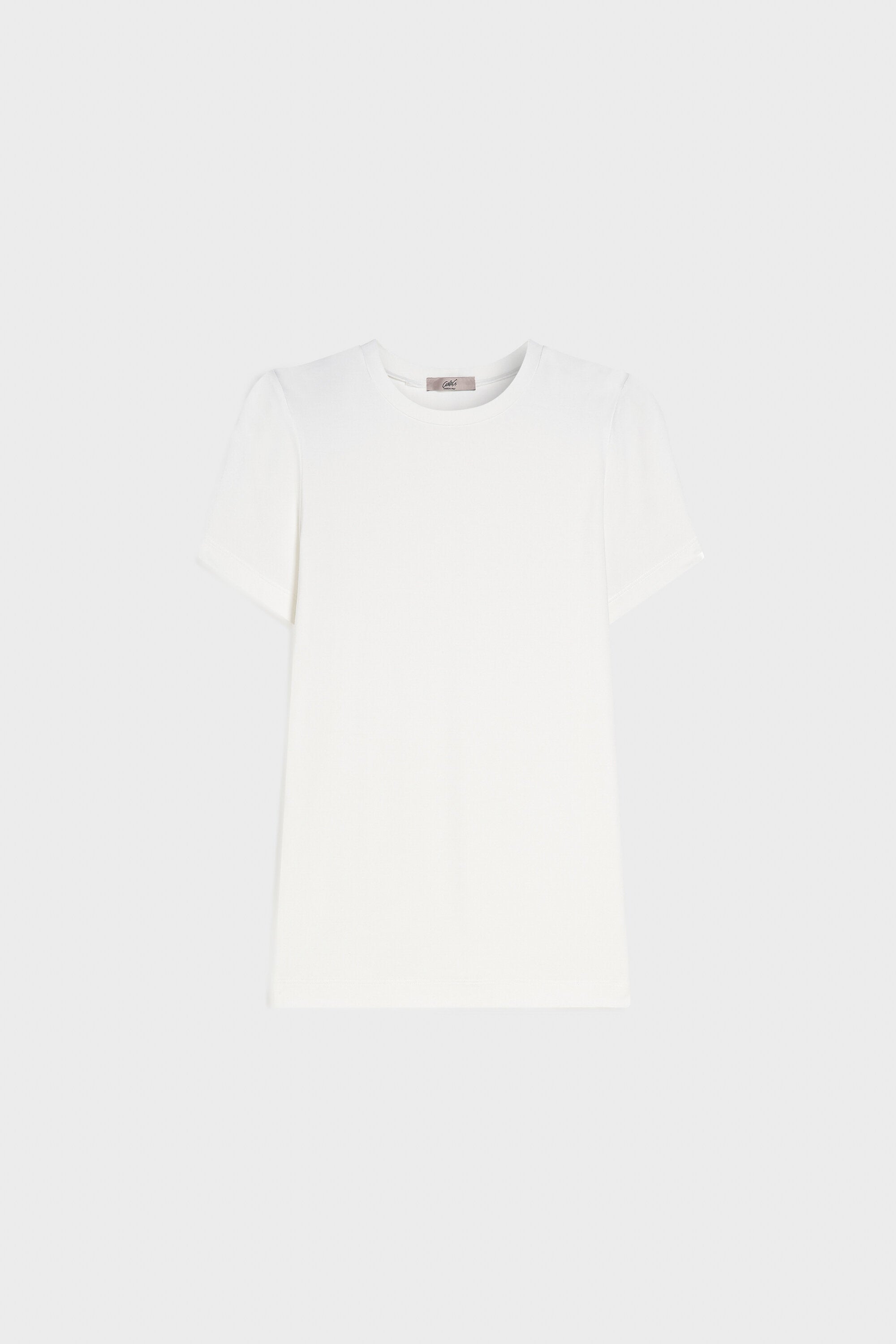 Maglia a mezze maniche in jersey di viscosa. Scollo rotondo. Lunghezza ai fianchi.