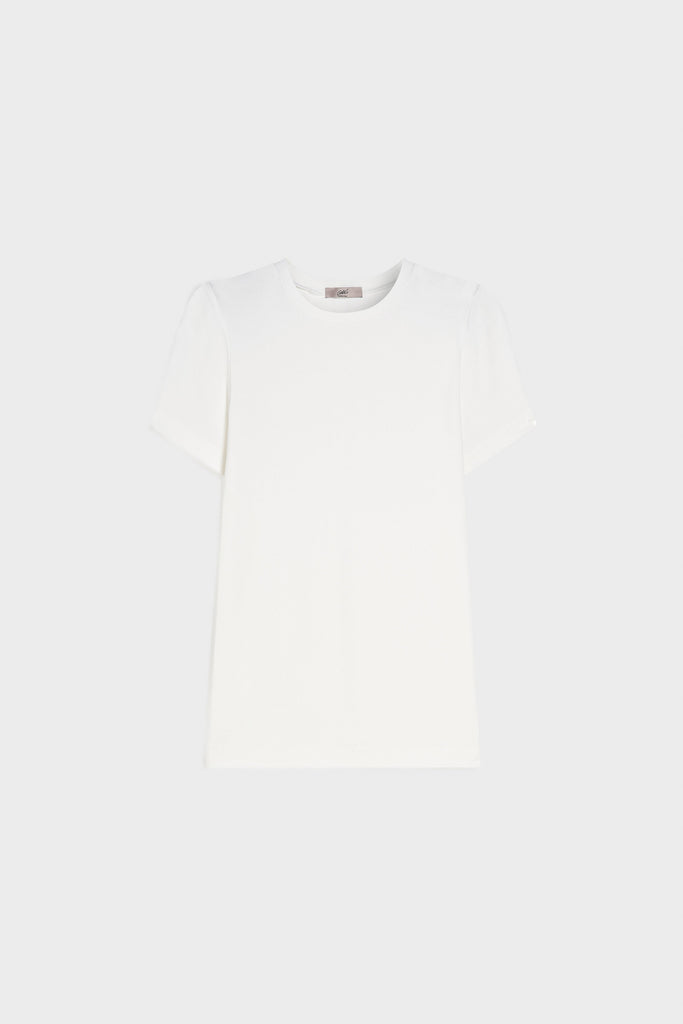 Maglia a mezze maniche in jersey di viscosa. Scollo rotondo. Lunghezza ai fianchi.