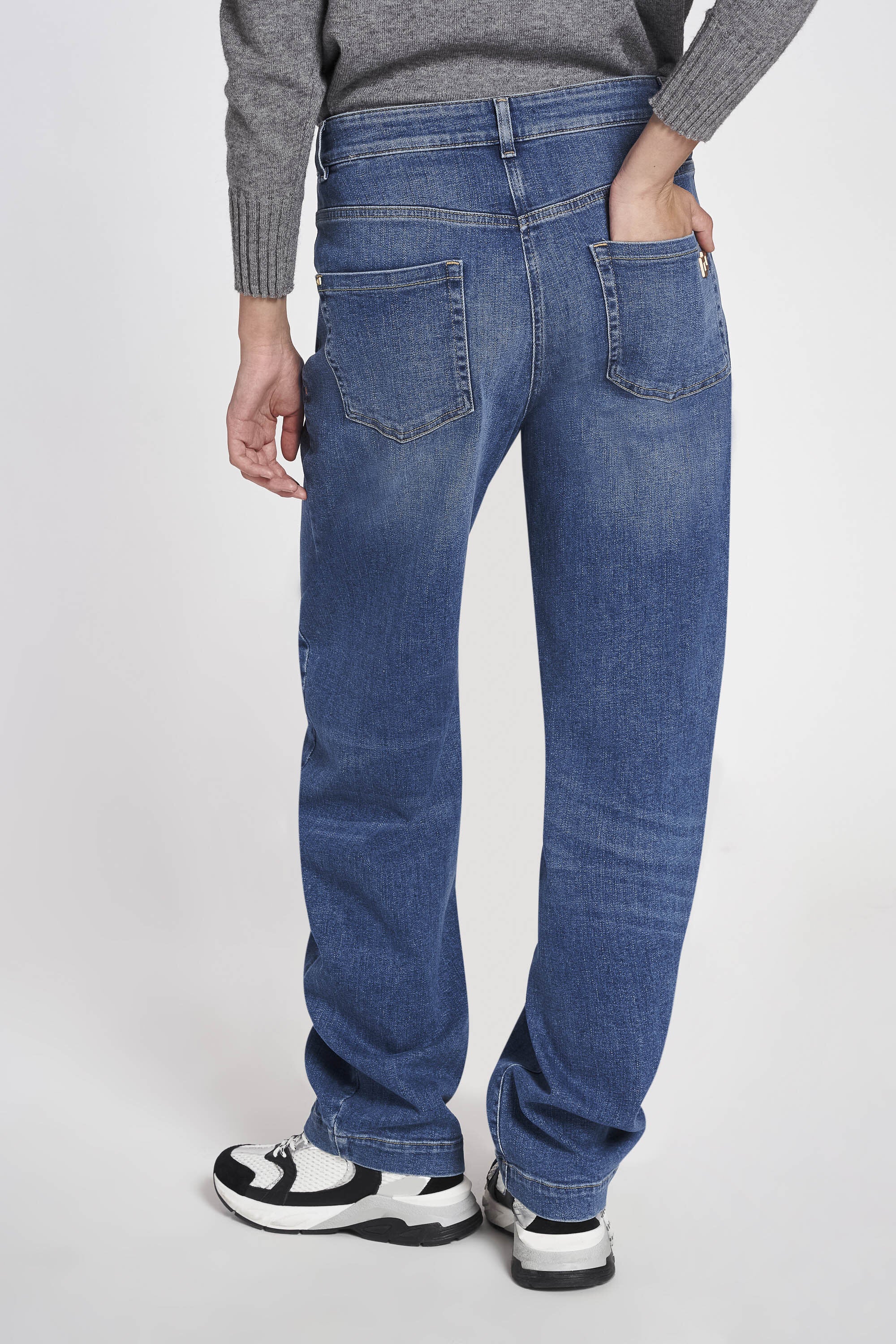 Jeans baller in denim elasticizzato deep blue a vita regolare con cavallo basso. Dietro applicazi...Learn more