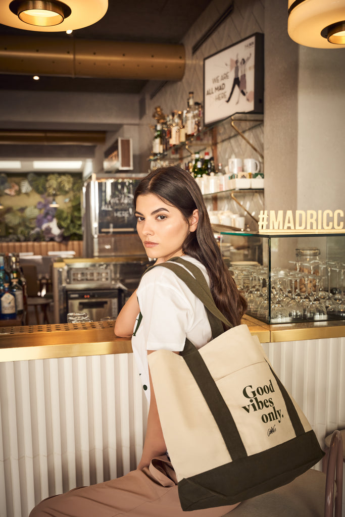 Carla G. ha pensato ad un Kit ideale per le vacanze, ma anche per la città: una maxi Bag in canvas di cotone organico e una White T, in due varianti, per creare dei match abbinati, ma anche inattesi!
