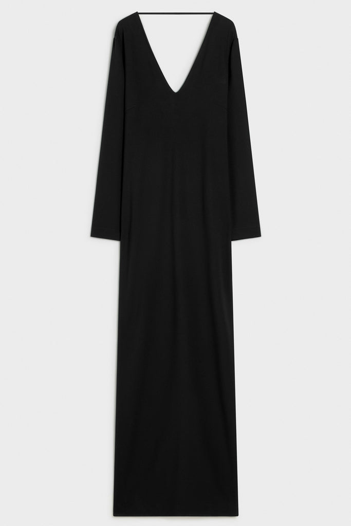 Abito a manica lunga in crepe di viscosa elasticizzato con profondo scollo a v davanti e dietro. ...Learn more