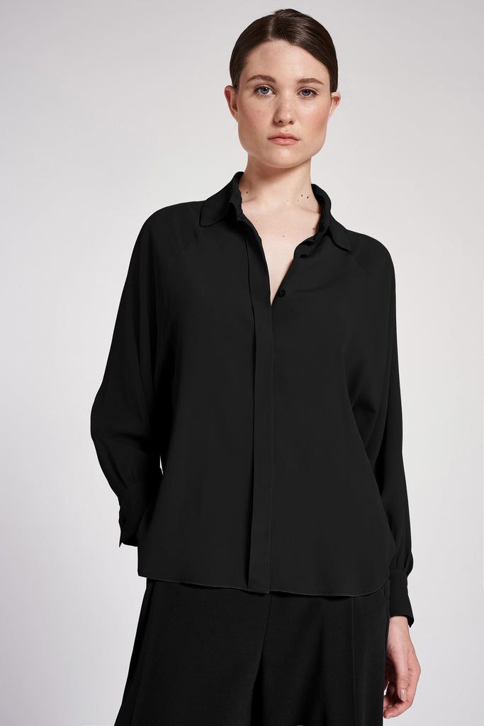 Camicia con collo alla coreana in cotone e seta e allacciatura con bottoni madreperla. Maniche lu...Learn more