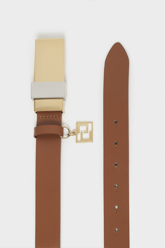 Cintura in pelle con fibbia bicolore