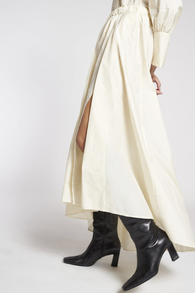 Gonna lunga in raso elasticizzato, con vita regolare elasticizzata. Taglio inclinato davanti e di...Learn more