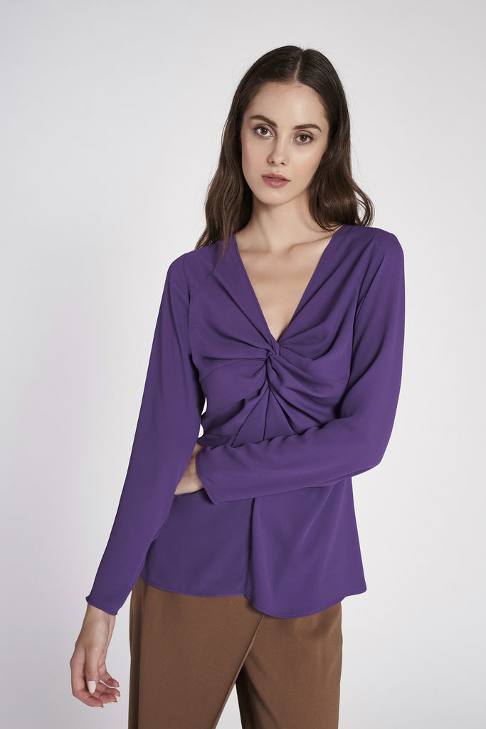 Maglia in crepe con scollo a barchetta e maniche ampie a pipistrello. Linea morbida. Lunghezza so...Learn more