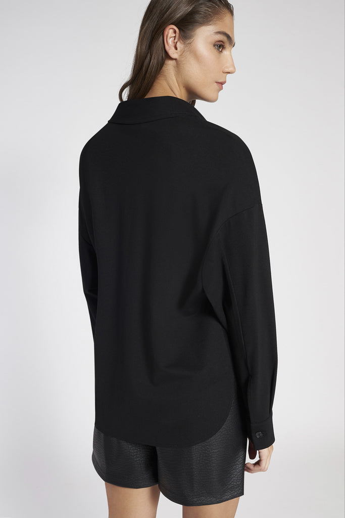 Camicia a maniche lunghe in maglia stoffa elasticizzata. Colletto, polsini e allacciatura frontal...Learn more